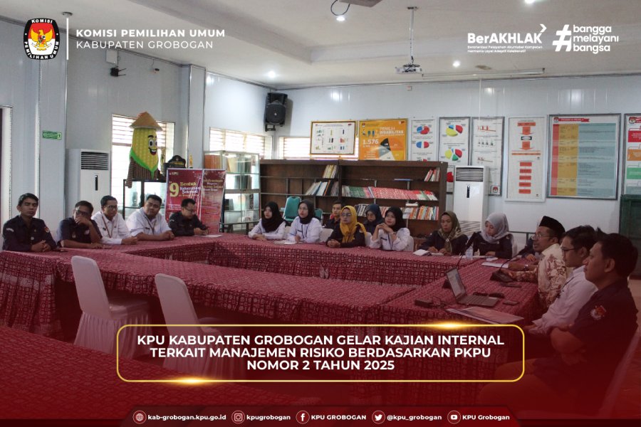 Hai #TemanPemilih, bertempat di aula, KPU Kabupaten Grobogan melaksanakan kegiatan rutin Kajian Internal Manajemen Risiko yang berpedoman pada Peraturan Komisi Pemilihan Umum (PKPU) Nomor 2 Tahun 2025, Selasa (18/11/2025). Kegiatan ini diikuti oleh Ketua, Anggota, serta jajaran Sekretariat KPU Kabupaten Grobogan.