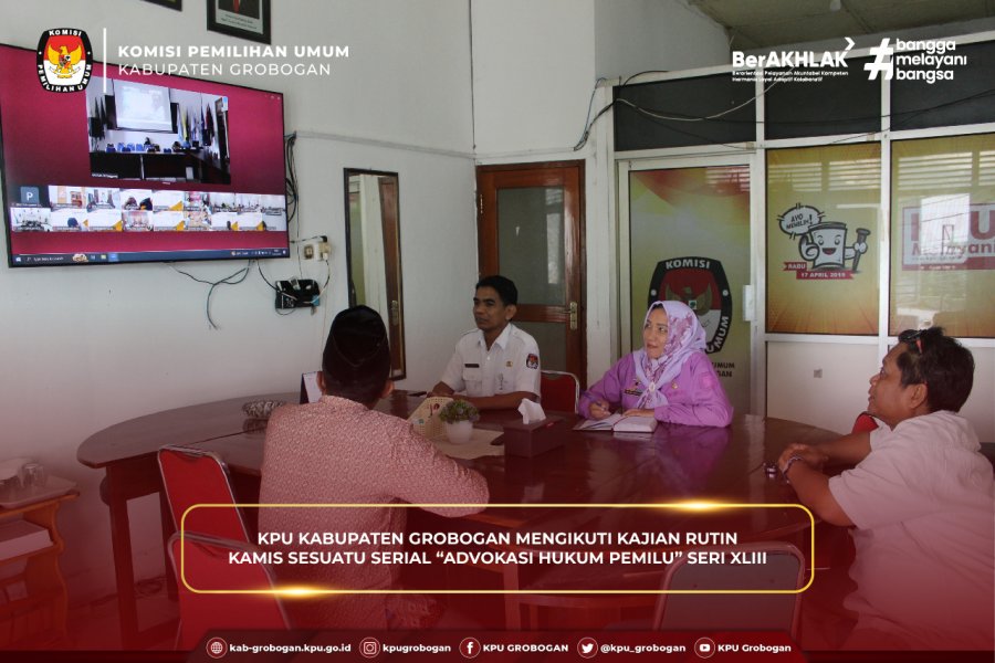 Hai #TemanPemilih, bertempat di lantai 2, KPU Kabupaten Grobogan mengikuti Kajian Rutin Kamis Sesuatu Serial “Advokasi Hukum Pemilu” Seri XLIII dengan tema Diskusi Film Animal Farm, Kamis (12/3/2026). Kegiatan yang diselenggarakan oleh KPU Provinsi Jawa Tengah ini diikuti oleh KPU Kabupaten/Kota se-Jawa Tengah secara daring.