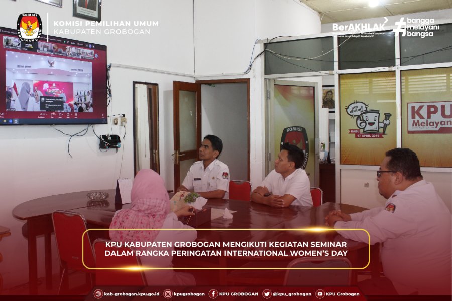 Hai #TemanPemilih, bertempat di lantai 2, KPU Kabupaten Grobogan mengikuti kegiatan seminar dalam rangka peringatan International Women’s Day yang diselenggarakan oleh KPU RI secara daring, Kamis (12/3/2026).