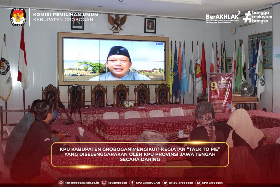 Hai #TemanPemilih, KPU Kabupaten Grobogan mengikuti kegiatan “Talk to Me” yang diselenggarakan oleh KPU Provinsi Jawa Tengah secara daring pada Rabu (25/3/2026). Kegiatan ini diikuti oleh KPU Kabupaten/Kota se-Jawa Tengah, baik yang bekerja dari kantor (WFO) maupun Work From Anywhere (WFA).
