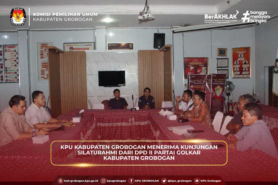 Hai #TemanPemilih, dalam rangka menindaklanjuti atas pemberitahuan yang telah disampaikan sebelumnya oleh DPD II Partai Golongan Karya (Golkar) Kabupaten Grobogan kepada KPU Kabupaten Grobogan, Selasa (31/3/2026), KPU Kabupaten Grobogan menerima kunjungan silaturahmi dari DPD II Partai Golkar Kabupaten Grobogan bertempat di Aula Kantor KPU Kabupaten Grobogan.