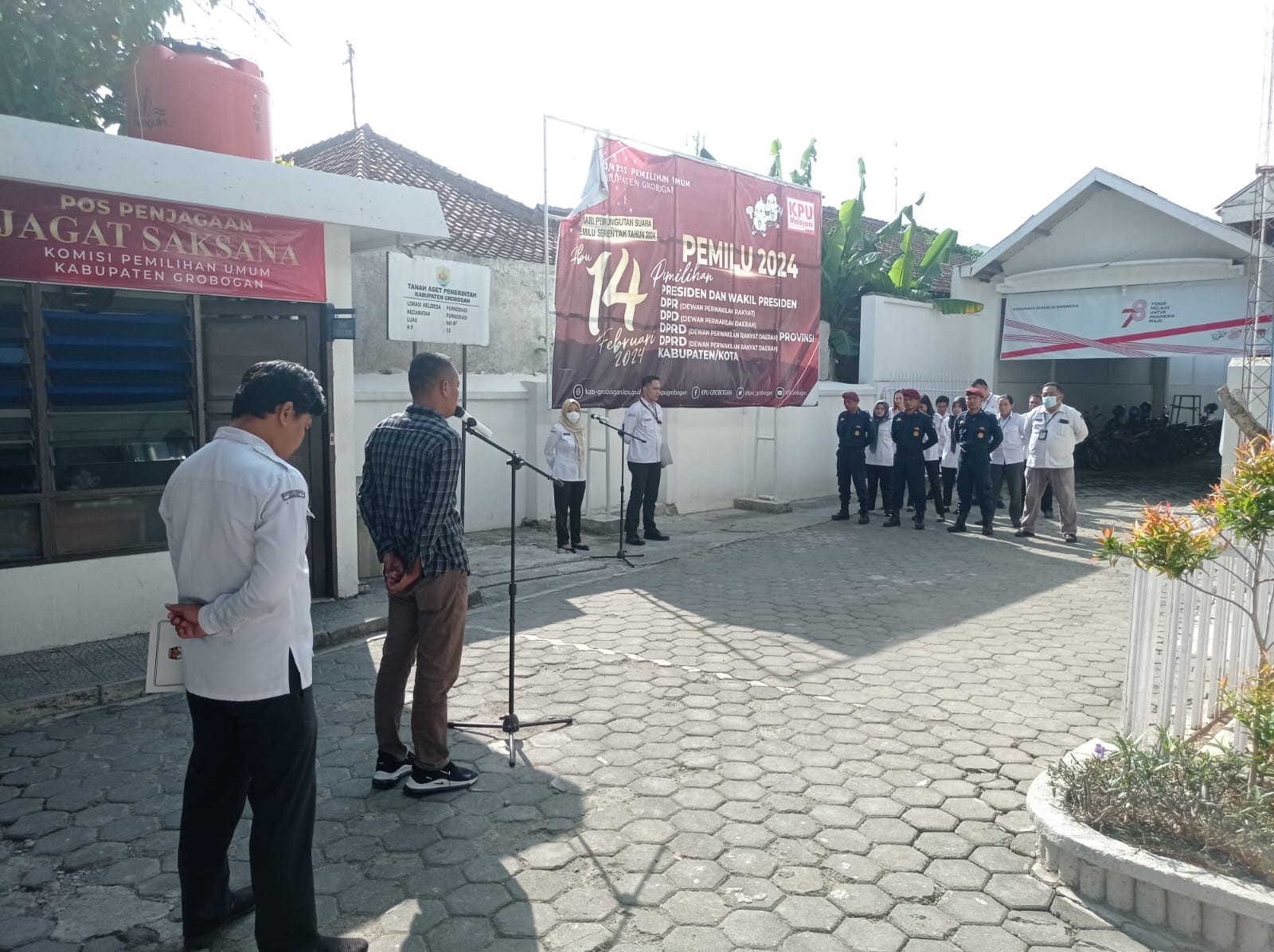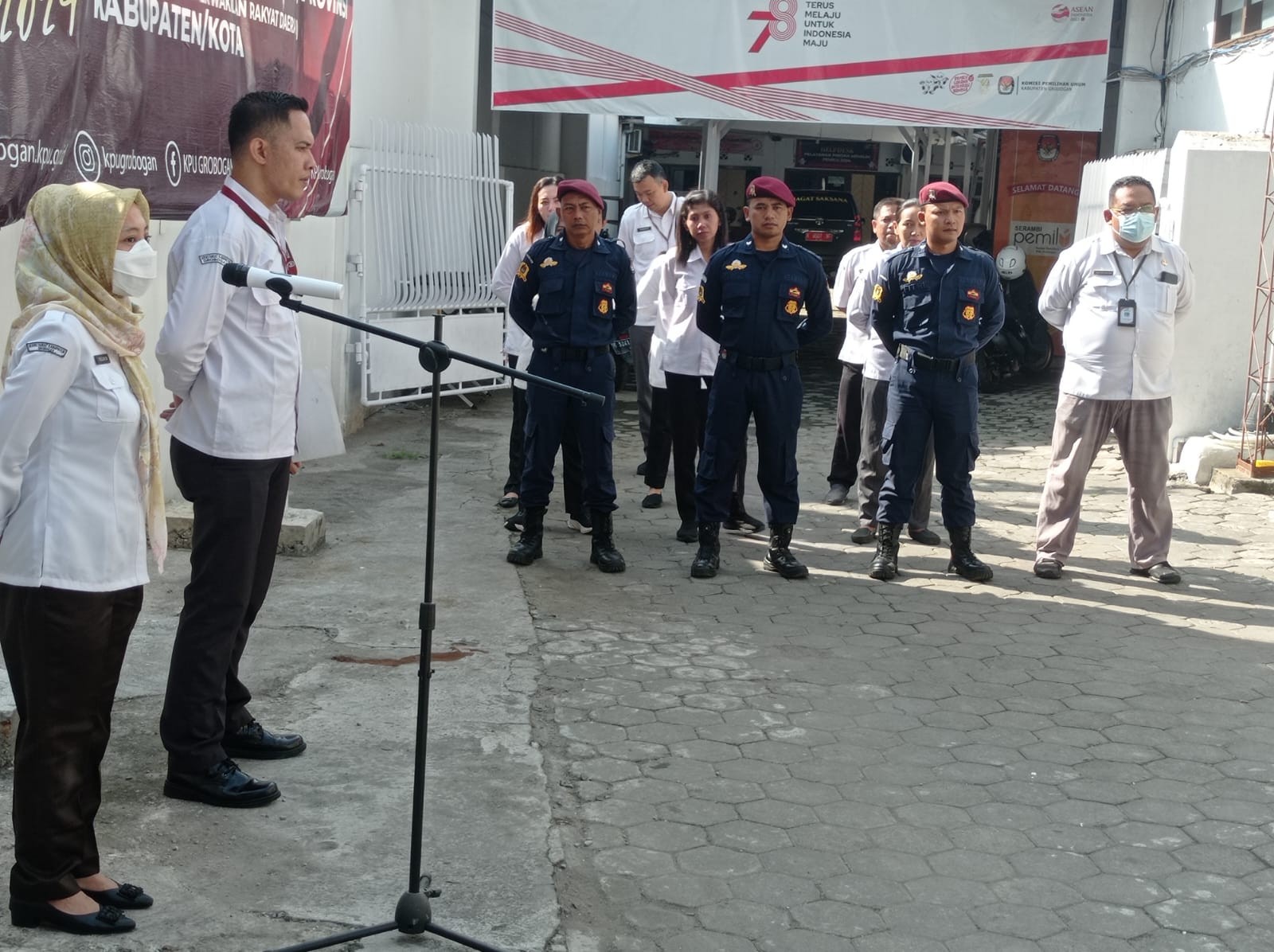 PURWODADI - KPU Kabupaten Grobogan gelar Apel Pagi, Senin 18 Desember 2023 bertempat di halaman Kantor KPU Kabupaten Grobogan.