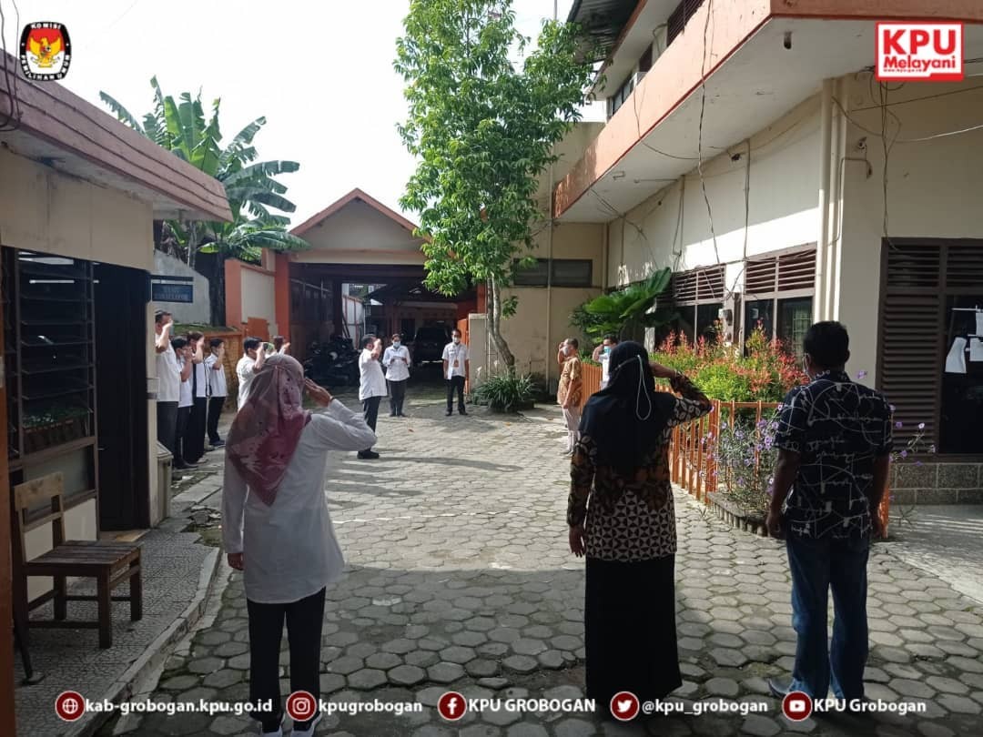 Mengawali tugas pada hari pertama di minggu kedua bulan Desember, KPU Kab Grobogan melaksanakan Apel Pagi pada pukul 08.00 WIB, dengan Pembina Apel Bapak Muhammad Machruz, ST, Anggota KPU Kab Grobogan Divisi Perencanaan Data dan Informasi. Dan mengambil tempat sebagai pemimpin apel adalah Bapak Dandy Setyawan, SIP. Pelaksanaan apel pagi kali ini berlangsung khidmat dalam keadaan cuaca yang cerah.