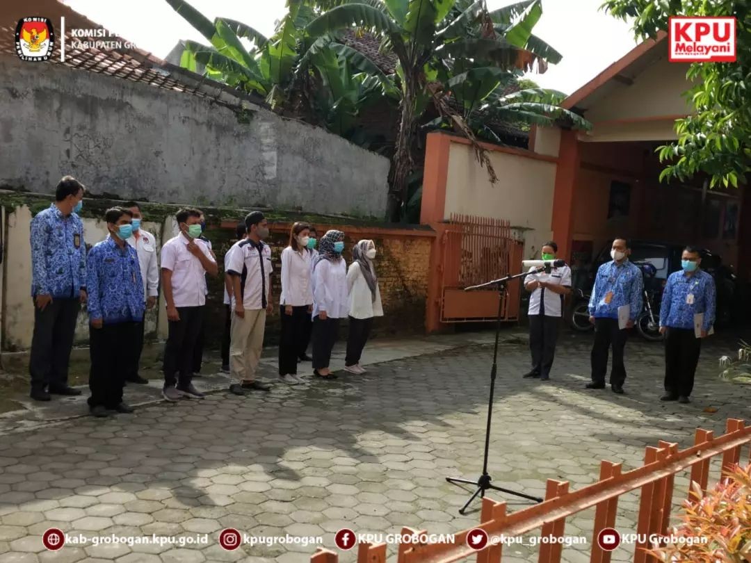 Seperti biasanya, tiap hari Senin KPU Kabupaten Grobogan melaksanakan apel pagi untuk memastikan kesiapan personel jajaran KPU Kabupaten dalam melaksanakan kegiatan di minggu ini. Dimulai pukul 08.00 WIB apel pagi kali ini dipimpin oleh Anggota KPU Kabupaten Grobogan Divisi Perencanaan, Data Dan Informasi Bapak Muhammad Machruz, ST sebagai pembina apel. Sementara bertindak sebagai komandan apel adalah Kasubag Teknis Dan Hupmas KPU Kabupaten Grobogan Bapak Heri Prasetyo, S. Sos.