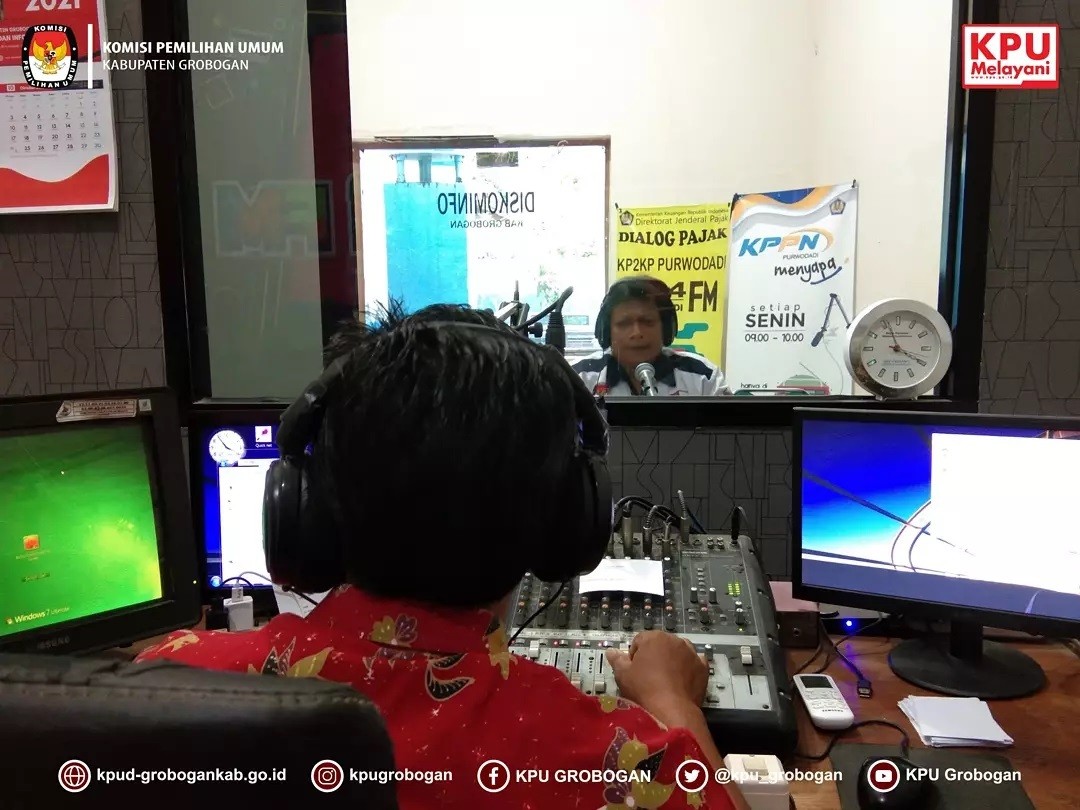 Purwodadi - Sore ini GoSiPP Dek kembali mengudara di Purwodadi FM. Kali ini bertindak sebagai narasumber adalah Ketua KPU Kabupaten Grobogan, Agung Sutopo, S. Pi, sedangkan host yang memandu jalannya acara ini adalah Susilo Utomo. Tema yang diangkat kali ini adalah “Kesiapan Sarana Prasarana KPU dalam Menyongsong Pemilu dan Pemilihan Tahun 2024.