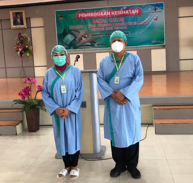 Solo - Pasangan calon Sri Sumarni dan Bambang Pujiyanto melaksanakan tes di hari kedua pemeriksaan kesehatan. Keduanya menjalani tes psikologi dan tes kesehatan secara menyeluruh, Selasa (15/9/2020).