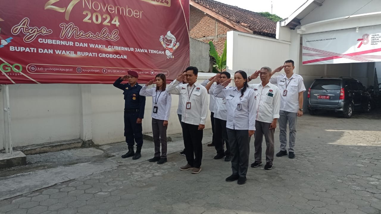 PURWODADI - Senin (24/6/2024) KPU Kabupaten Grobogan gelar Apel Pagi. Giat yang bertempat di halaman Kantor KPU Kabupaten Grobogan ini diikuti oleh Ketua dan Anggota, Sekretaris beserta jajaran Sekretariat KPU Kabupaten Grobogan.