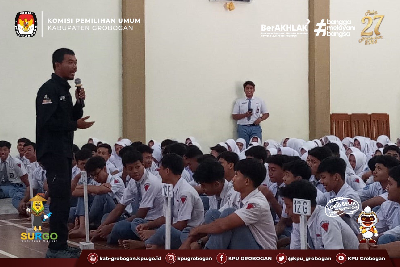 Hai #temanpemilih, KPU Kabupaten Grobogan gelar KPU Goes to School dalam rangka Sosialisasi Pemilihan Gubernur dan Wakil Gubernur Jawa Tengah serta Bupati dan Wakil Bupati Grobogan Tahun 2024, Selasa (8/10/2024).