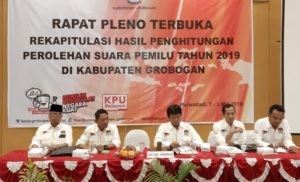 KPU Kabupaten Grobogan melaksanakan Rapat Pleno Terbuka Rekapitulasi Hasil Penghitungan Perolehan Suara Pemilu Serentak 2019 secara maraton yang dilakukan selama dua hari, mulai 2 Mei hingga 3 Mei 2019 di ruang Ballroom Hotel GM Kyriad Purwodadi.