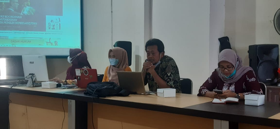 Pagi ini, KPU Kabupaten Grobogan menghadiri undangan Rapat Kerja Pengawasan Pemutakhiran Data Pemilih Berkelanjutan Tahun 2022 yang diselenggarakan oleh Bawaslu Kabupaten Grobogan. Hadir sebagai tamu undangan pada kesempatan ini adalah KPU Kabupaten Grobogan, Dinas Kependudukan Dan Pencatatan Sipil Kabupaten Grobogan serta Dinas Sosial Kabupaten Grobogan. Secara pribadi haris M. Machruz, ST sebagai Anggota KPU Kabupaten Grobogan Divisi Perencanaan, Data Dan Indormasi.