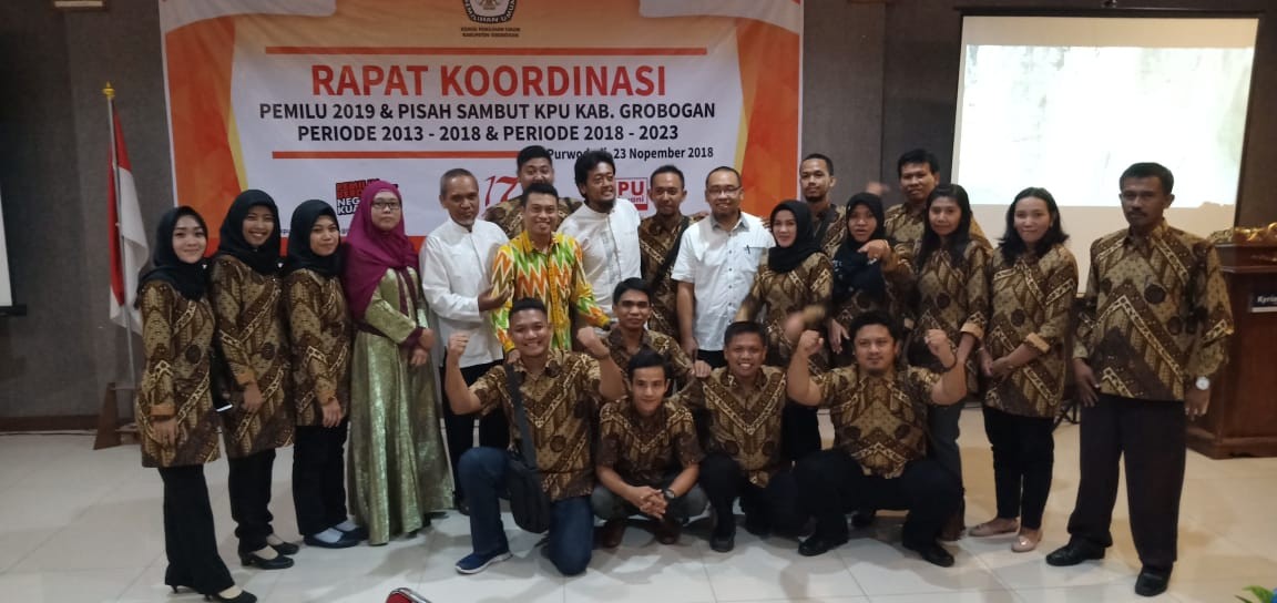 KPU Kab. Grobogan melaksanakan Rakor Pemilu 2019 sekaligus pisah sambut KPU 2013-2018 kepada KPU 2018-2023