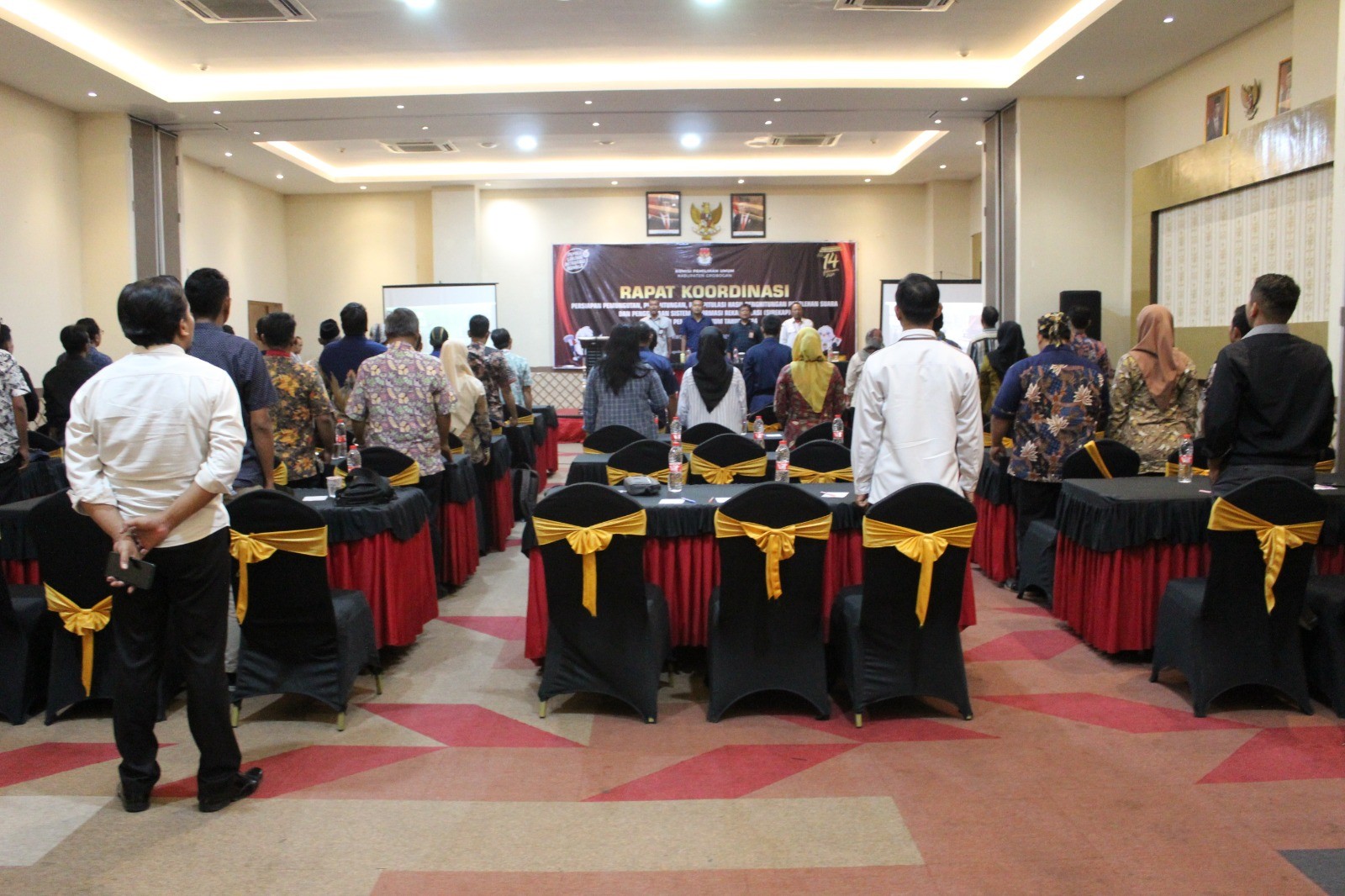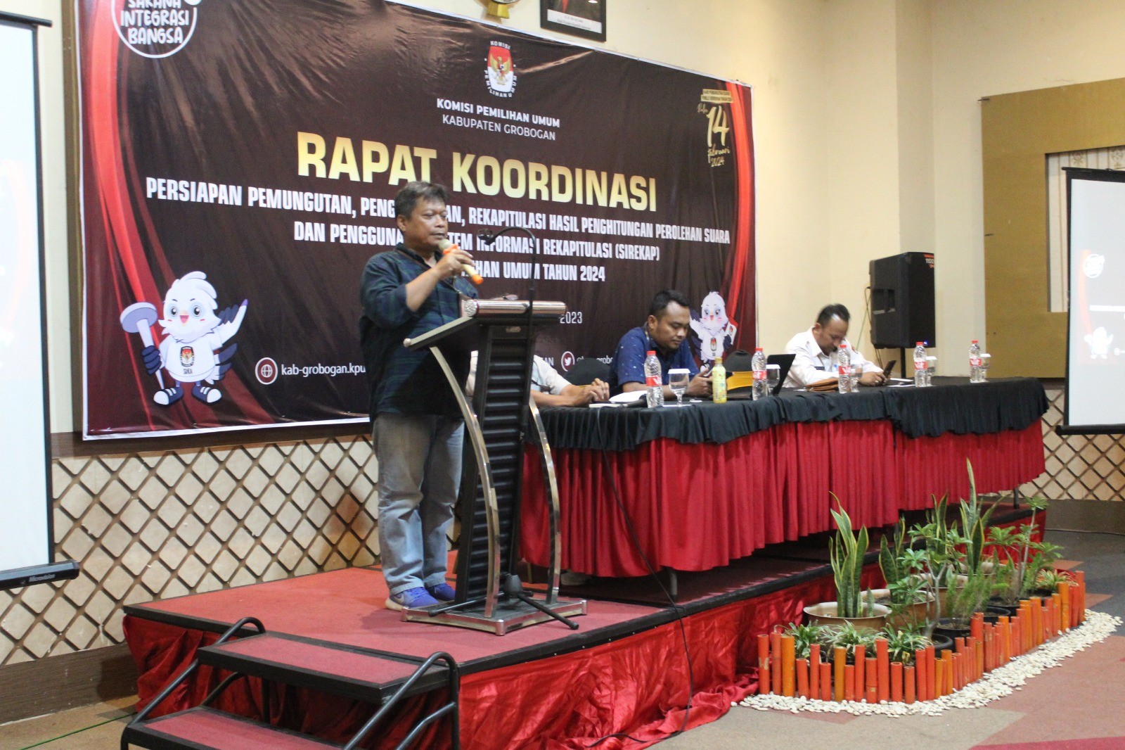 PURWODADI - Kamis (30/11/2023), KPU Kabupaten Grobogan mengadakan Rapat Koordinasi Persiapan Pemungutan, Penghitungan, Rekapitulasi Hasil Penghitungan Perolehan Suara dan Penggunaan Sistem Informasi Rekapitulasi (Sirekap) dalam Pemilihan Umum Tahun 2024. Kegiatan yang bertempat di Hotel Frontone Purwodadi ini diikuti oleh Ketua, Anggota Panitia Pemilihan Kecamatan (PPK) Divisi Mutarlih dan Divisi Teknis se-Kabupaten Grobogan