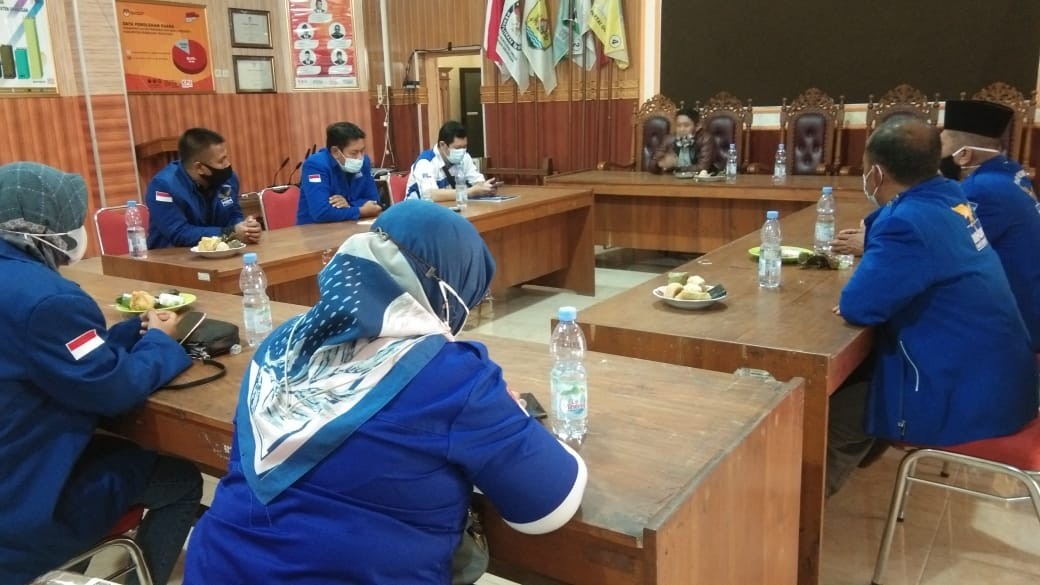 Ketua DPC Partai Demokrat Kabupaten Grobogan Ibu Harmusa Oktaviani menjelaskan maksud kedatangannya adalah silaturahmi, dan selanjutnya untuk menerangkan bahwa tidak ada perubahan kepengurusan Partai Demokrat di Kabupaten Grobogan karena kepengurusan Partai Demokrat masih merunut pada SK Kepengurasan partai Demokrat yang dikeluarkan Kementerian Hukum Dan HAM Tahun 2020. Selesai menjelaskan hal tersebut, Ibu Harmusa Oktaviani juga menyerahkan SK Kepengurusan Partai Demokrat Tahun 2020 kepada KPU Kabupaten Grobogan.