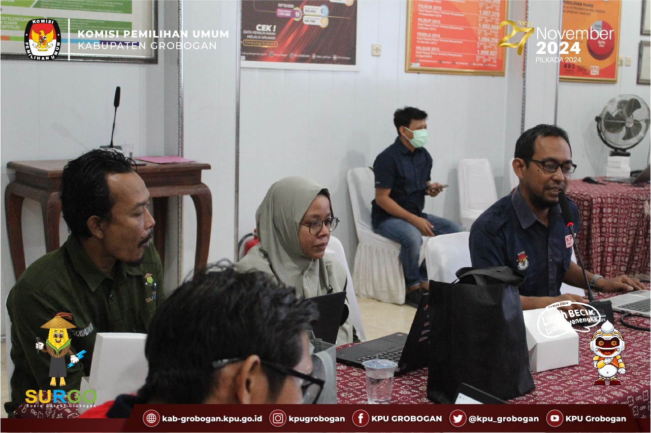 Hai #temanpemilih, Dalam rangka optimalisasi penggunaan Sidalih untuk mendukung proses kerja Penyelenggara Pemilu dan Pemilihan dalam menyusun, mengkoordinasi, memutakhirkan, menetapkan, mendokumentasikan, mengumumkan, dan memelihara data pemilih, KPU Kabupaten Grobogan gelar Rapat Koordinasi Pemutakhiran Data Pemilih dan Bimtek Penggunaan Sidalih serta Unggah Data Pemilih Hasil Coklit Untuk Panitia Pemilihan Kecamatan (PPK) dalam Pemilihan Gubernur dan Wakil Gubernur Jawa Tengah serta Bupati dan Wakil Bupati Grobogan Tahun 2024, Sabtu (27/7/2024).