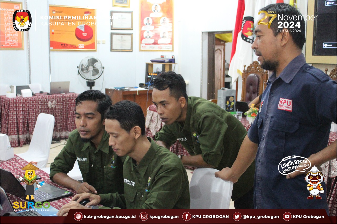 Acara dilanjutkan dengan pendampingan dari fokus kegiatan hari ini oleh Admin Sidalih KPU Kabupaten Grobogan Bapak Arifin, S.M dan Operator Sidalih KPU Kabupaten Grobogan Ibu Mungki Maharani, S.Pt., S.E. kepada Anggota Panitia Pemilihan Kecamatan (PPK) Koordinator Pemutakhiran Data se-Kabupaten Grobogan.