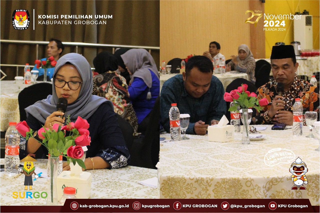 Acara yang bertempat di Hotel 21 Purwodadi ini diikuti dari unsur Forkopimda Grobogan, OPD terkait, Bawaslu Kabupaten Grobogan dan Partai Politik Peserta Pemilu/Pemilihan Tahun 2024, serta hadir sebagai narasumber dari Polres Grobogan Bapak AKP Joko Susilo, Kasat Intelkam Polres Grobogan.