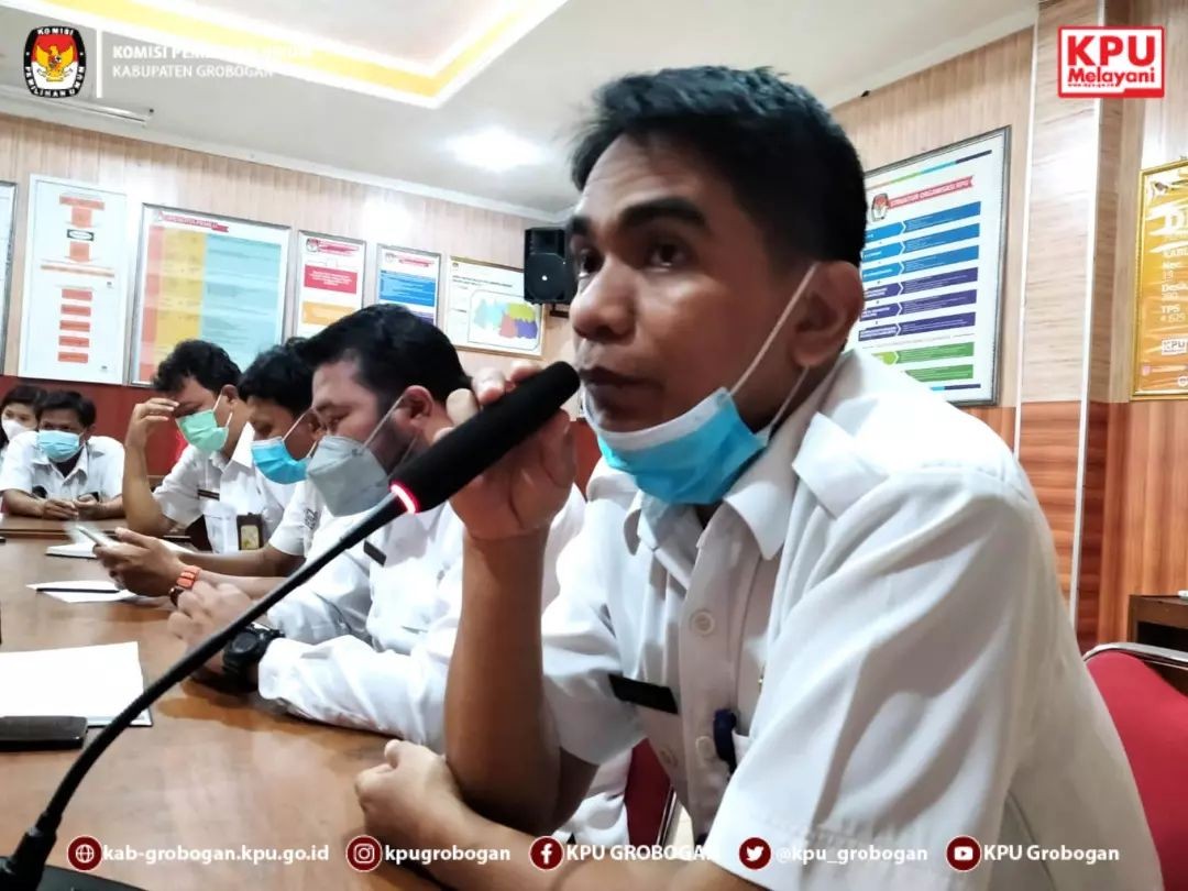 Kali ini masing-masing Kasubag dan Plt Kasubag di lingkungan sekretariat KPU Kabupaten Grobogan menyampaikan evaluasi dan rencana kerjanya. Dimulai dari Kasubag Teknis Dan Hupmas Heri Prasetyo, S. Sos, Beliau menyampaikan bahwa minggu ini, kegiatan yang akan dilaksanakan oleh Sub Bagian Teknis adalah SamSu Kamisan ke stake holder, untuk minggu ini Polres Grobogan menjadi tujuan pertama. Selain SamSu Kamisan,kegiatan yang lain adalah pemenuhan permintaan masyarakat akan data Pemilu dan Pemilihan yang dikuasai KPU kabupaten Grobogan.