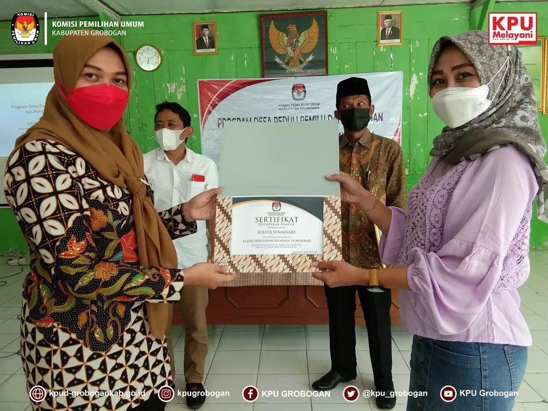 Pada pertemuan ini, telah disepakati susunan Ketua, Sekretaris dan Bendahara dari Kader DP3 di Desa Pulutan, dan juga penandatanganan naskah kerjasama, antara kader DP3 Desa Pulutan dengan Kepala Desa, sebagai bentuk keseriusan dari dua belah pihak untuk melaksanakan Program DP3 ini. Pada kesempatan ini, KPU Kabupaten Grobogan menyerahkan piagam kepada Kepala Desa Pulutan, dan sertifikat kepada kader DP3 di Desa Pulutan.