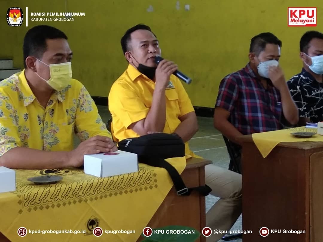 Hadir pada kesempatan ini adalah Ngatiman, Muhammad Mahcruz, Suwiknyo dan Sulistiyorini. Sementara Ketua DPD Partai Golkar Muhammad Sidiq hadir bersama jajaran DPD Partai Golkar. KPU Kabupaten Grobogan berterimakasih atas sambutan hangat yang diberikan oleh DPD Partai Golkar. Dalam SamSu Kamisan ini, KPU Kabupaten Grobogan menyampaikan informasi awal perihal Pemilu dan Pemilihan Tahun 2024. Sementara Muhammad Sidiq juga menyampaikan apresiasi atas kerjasama yang telah terjalin baik selama ini dengan KPU Kabupaten Grobogan. SamSu Kamisan kali ini diakhiri dengan diskusi ringan mengenai usaha-usaha yang telah dan akan dilakukan oleh KPU Kab, Grobogan dan DPD Partai Golkar untuk mensukseskan Pemilu dan Pemilihan Tahun 2024.