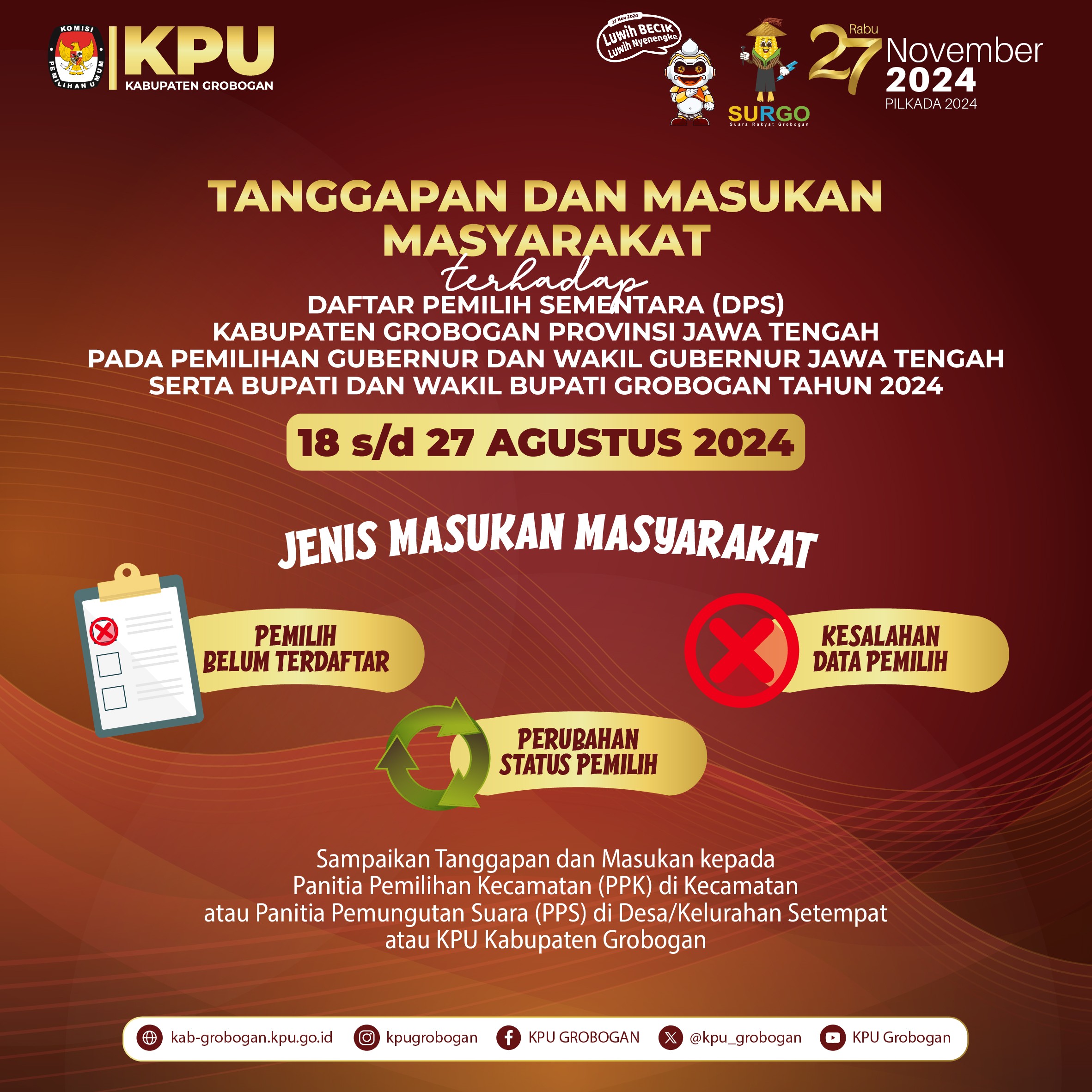 Tanggapan dan Masukan Masyarakat Terhadap Daftar Pemilih Sementara (DPS) Kabupaten Grobogan pada Pilkada 2024