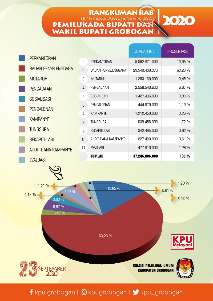 Pilkada Serentak 2020 yang akan diselenggarakan oleh 9 Provinsi, 224 Kabupaten dan 37 Kota sudah didepan mata. Di Jawa Tengah ada 21 Kab/Kota yang akan melaksanakan Pilkada Serentak pada 23 September 2020, termasuk Kabupaten Grobogan. Berdasarkan Permendagri No. 54 Tahun 2019, paling lambat pada tanggal 1 Oktober 2019, Kab/Kota yang akan melaksanakan Pilkada Serentak 2020 harus sudah menandatangani Naskah Perjanjian Hibah Daerah (NPHD) dengan Pemda setempat.