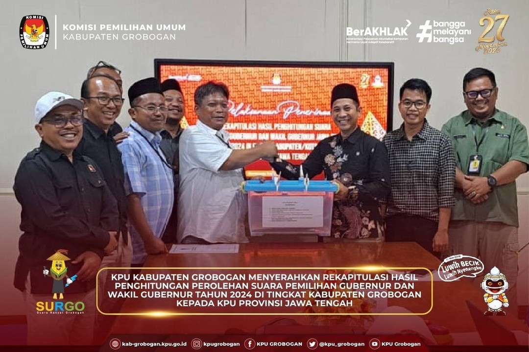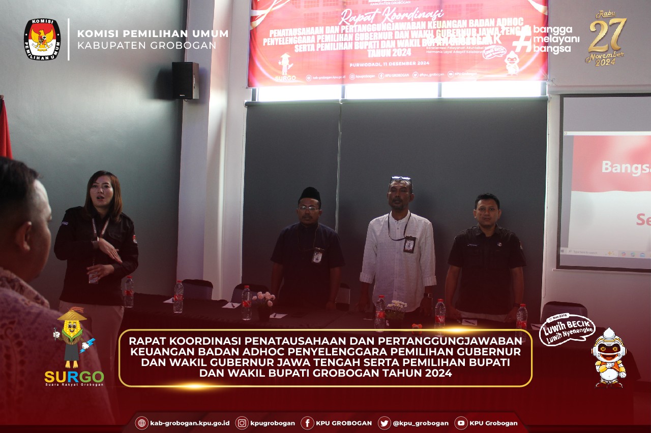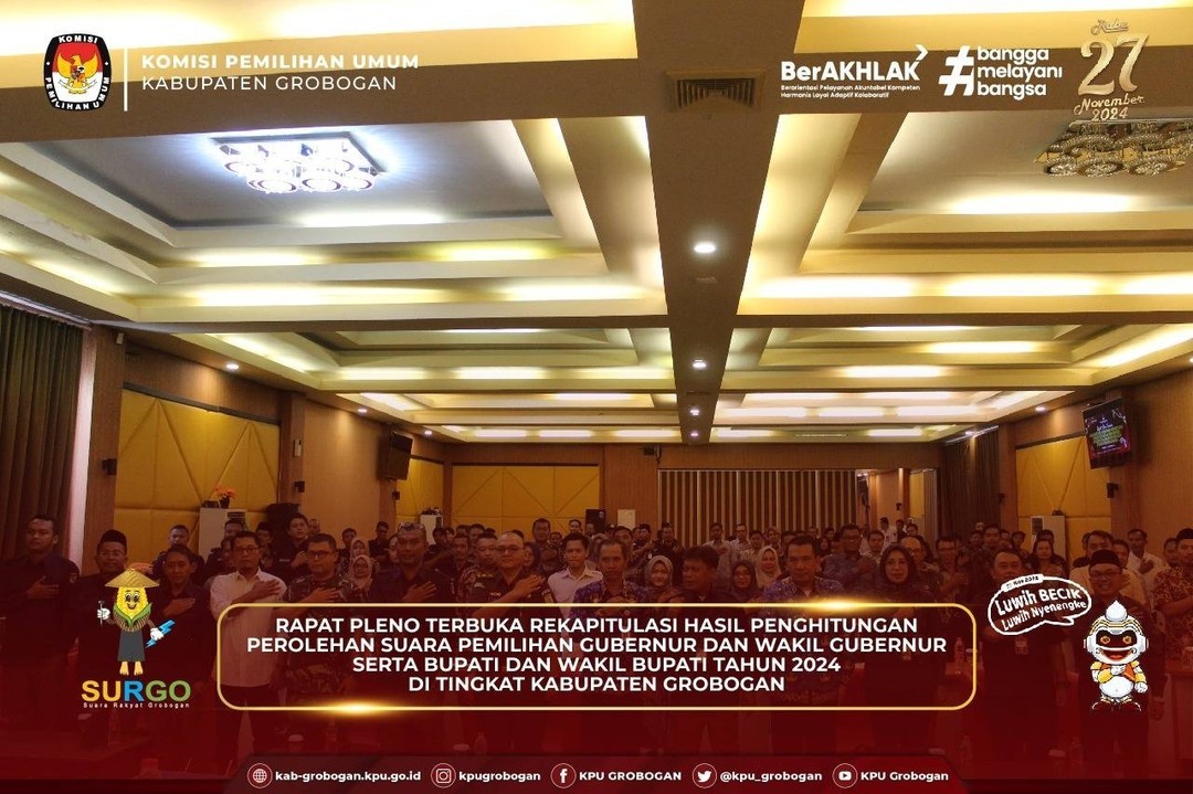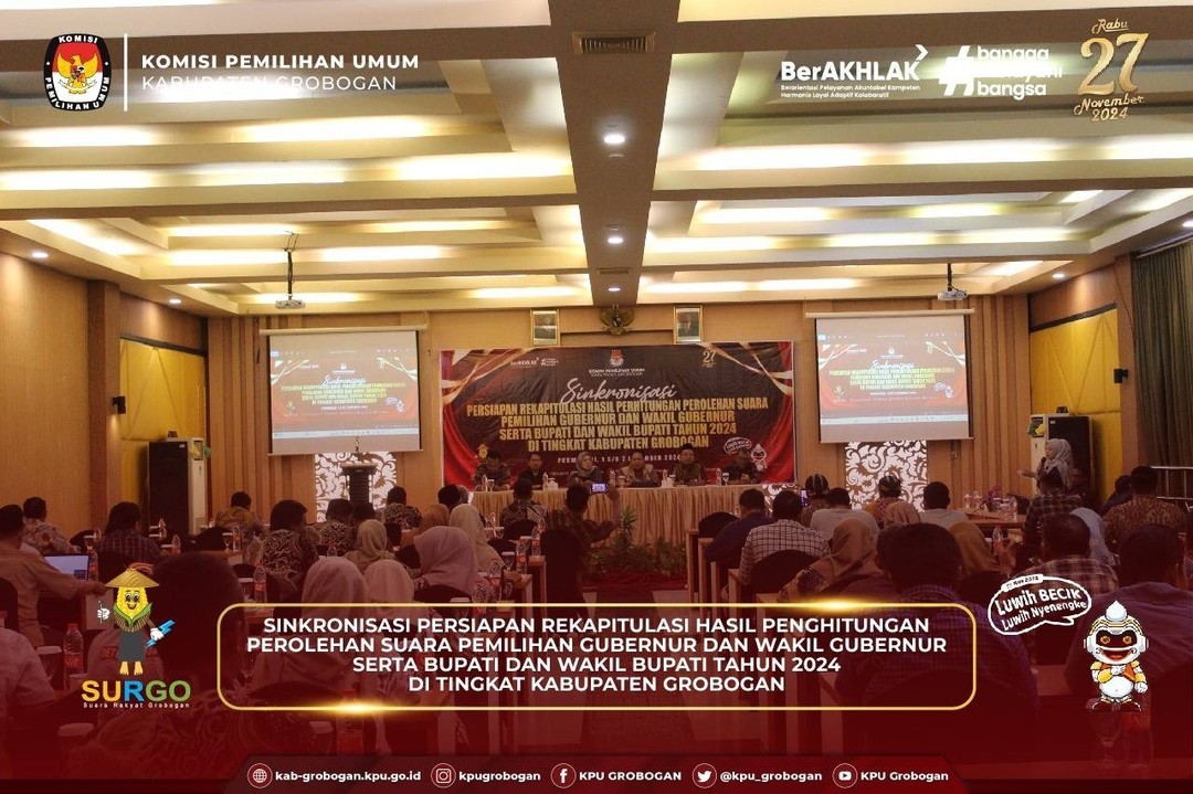 Hai #temanpemilih, KPU Kabupaten Grobogan gelar Sinkronisasi Persiapan Rekapitulasi Hasil Penghitungan Perolehan Suara Pemilihan Gubernur dan Wakil Gubernur serta Bupati dan Wakil Bupati Tahun 2024 di Tingkat Kabupaten Grobogan, Minggu (1/12/2024).