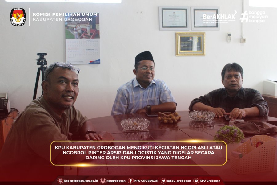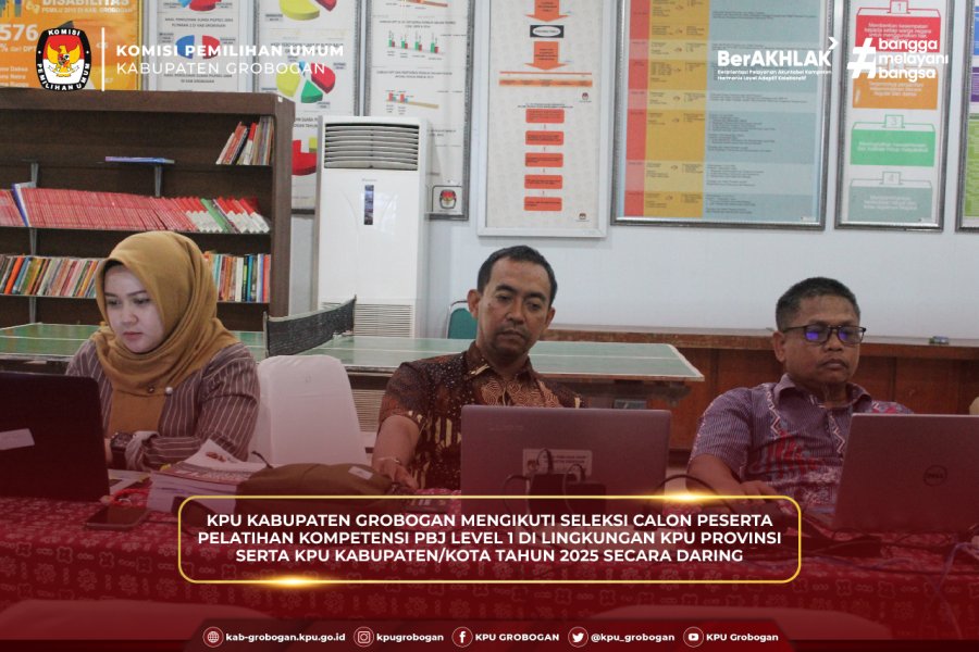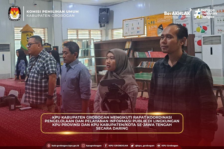 Hai #TemanPemilih, bertempat di aula, KPU Kabupaten Grobogan mengikuti Kajian Rutin “Kamis Sesuatu” Seri ke-19 yang digelar oleh KPU Provinsi Jawa Tengah, Kamis (18/9/2025). Acara yang berlangsung secara daring ini diikuti seluruh KPU Kabupaten/Kota se-Jawa Tengah. Hadir sebagai narasumber antara lain M. Agus Muslim (Kadiv Hukum dan Pengawasan KPU Provinsi Banten), Dede Abdurrosyid (Kadiv Hukum dan Pengawasan KPU Kabupaten Serang), serta Iman Santosa (Kadiv Hukum dan Pengawasan KPU Kota Pekalongan).