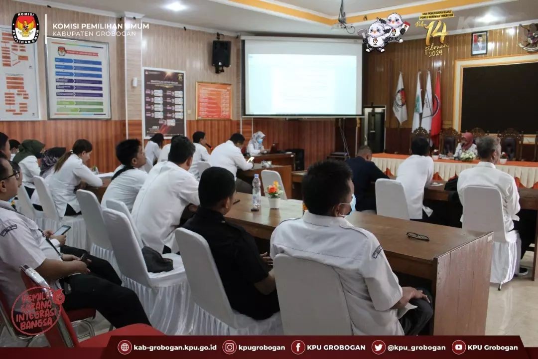 Dalam amanatnya Ibu Sulistiyorini, SP mengingatkan kepada seluruh jajaran Sekretariat KPU Kabupaten Grobogan untuk selalu melaksanakan tahapan dengan sebaik-baiknya, karena semakin pendek waktu yang dibutuhkan menuju tanggal 14 Februari 2024. Tentunya akan mengakibatkan kegiatan akan semakin banyak, sehingga seluruh keluarga KPU Kabupaten Grobogan harus menyiapkan kesehatan raga dan jiwa agar dapat melaksanakan seluruh kegiatan Pemilihan Umum Tahun 2024. Tak lupa beliau juga mengajak seluruh keluarga KPU Kabupaten Grobogan untuk mendoakan Bapak Dandy Setiyawan S. IP sebagai Kasubbag Keuangan, Umum dan Logistik Sekretariat KPU Kabupaten Grobogan yang saat ini sedang sakit.