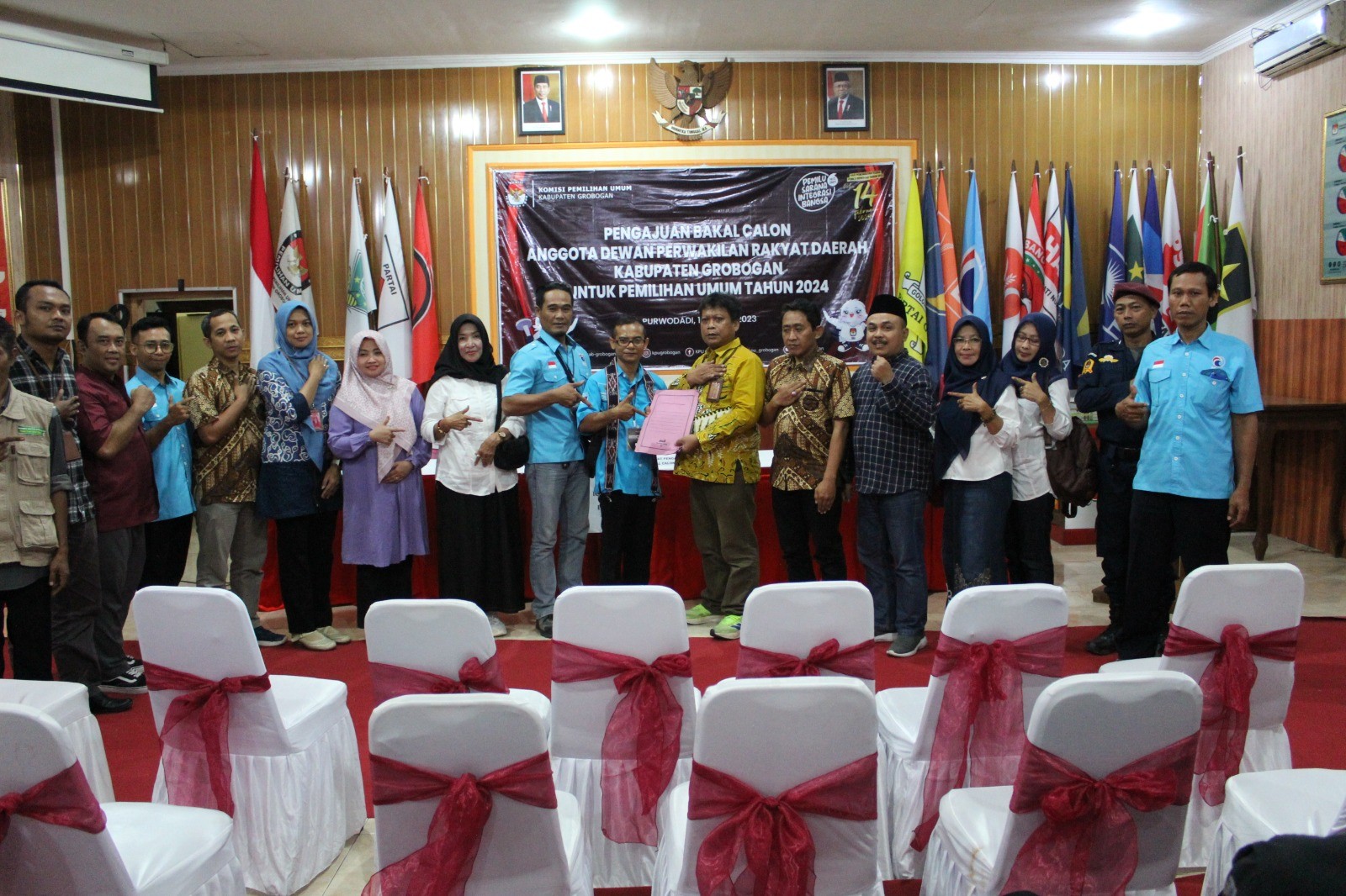 PURWODADI - Minggu, 14 Mei 2023 pukul 19.45 WIB, Partai Buruh datang ke kantor KPU Kabupaten Grobogan dengan membawa berkas pengajuan bakal calon Anggota DPRD Kabupaten yang sebelumnya telah diunggah di Sistem Informasi Pencalonan (SILON). Hadir pada saat itu adalah Ketua Partai Perindo tingkat Kabupaten Grobogan Bapak Nova Surya S. bersama Sekretaris Partai Buruh tingkat Kabupaten Grobogan Ibu Wilda A.. . Kehadiran Partai Buruh diterima dengan hangat oleh Ketua KPU Kabupaten Grobogan. Setelah menyematkan cindera mata, Agung Sutopo, secara resmi menyambut rombongan Partai Perindo. Berkesempatan menyambut rombongan Partai Perindo adalah Anggota KPU Kabupaten Grobogan Divisi Sosdiklihparmas & SDM Ngatiman, SE Dalam sambutannya, Ngatiman mengucapkan apresiasi kepada Partai Perindo karena telah berhasil menyelesaikan tahapan pendaftaran pengajuan bakal calon Anggota DPRD Kabupaten, beliau juga berharap semoga tahapan ini bisa berjalan lancar hingga penetapan DCT. Sementara Wilda berharap, dengan proses pengajuan bakal calon Anggota DPRD ini Partai Buruh dapat turut serta meramaikan pesta demokrasi yang akan digelar tahun 2024 mendatang, tak lupa Wilda mengucapkan terimakasih kepada KPU Kabupaten Grobogan atas penyambutan yang dilakukan. Setelah dokumen pengajuan bakal calon Anggota DPRD Kabupaten Grobogan diterima oleh Ketua KPU Kabupaten Grobogan, untuk kemudian dilakukan pemeriksaan, dan dinyatakan lengkap. Berita Acara dan Tanda Terima Penerimaan Berkas Pengajuan diserahkan oleh Agung Sutopo, kepada Ketua Partai Buruh tingkat Kabupaten Grobogan.