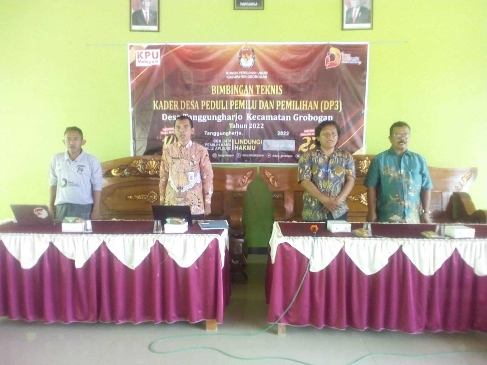 GROBOGAN - Kamis, 25 Agustus 2022, Dalam rangka meningkatkan kualitas dan kuantitas partisipasi pemilih untuk sukses penyelenggaraan Pemilu dan Pemilihan 2024 serta membangun kesadaran politik masyarakat agar menjadi pemilih yang berdaulat, Komisi Pemilihan Umum Kabupaten Grobogan menyelenggarakan Bimbingan Teknis (Bimtek) untuk Kader Desa Peduli Pemilu dan Pemilihan (DP3) di Desa Sumberjatipohon Kecamatan Grobogan. Hadir dalam Bimtek ini 25 kader Desa Peduli Pemilu dan Pemilihan (DP3) dari masing-masing basis. Pemateri pertama adalah Anggota Komisi Pemilihan Umum Kabupaten Grobogan Divisi Sosialisasi, Pendidikan Pemilih, Partisipasi Masyarakat dan SDM, Ngatiman, SE dengan materi Desa Peduli Pemilu dan Pemilihan (DP3) serta Sistem dan Tahapan Pemilu dan Pemilihan. Kemudian dilanjutkan oleh pemateri kedua yaitu dari Bakesbangpol Kabupaten Grobogan Muflih Yusuf, SE, MM dengan materi yaitu Pendidikan Politik Dalam Pencegahan Politik Uang. Materi terakhir disampaikan oleh Persatuan Wartawan Indonesia (PWI) Dani Agus yaitu teknik dan identifikasi berita bohong (hoaks). Suasana Bimtek Kader DP3 menjadi hangat, karena materi-materi yang disampaikan oleh narasumber menarik bagi Kader DP3. Banyak pertanyaan yang dilontarkan oleh kader DP3 Desa Sumberjatipohon Kecamatan Grobogan, antara lain bagaimana cara mengikis praktek politik uang yang sepertinya sudah menjadi budaya. Pertanyaan-pertanyaan ini dijawab dengan apik oleh narasumber. Ngatiman berharap dengan Bimtek Kader DP3 Desa Sumberjatipohon dapat meningkatkan partisipasi pemilih di Desa Sumberjatipohon khususnya, dan masyarakat Grobogan pada umumnya. Sementara Muflih berharap Bimtek Kader DP3 Desa Sumberjatipohon Kecamatan Grobogan ini mampu menekan terjadinya praktek politik uang. By : MM