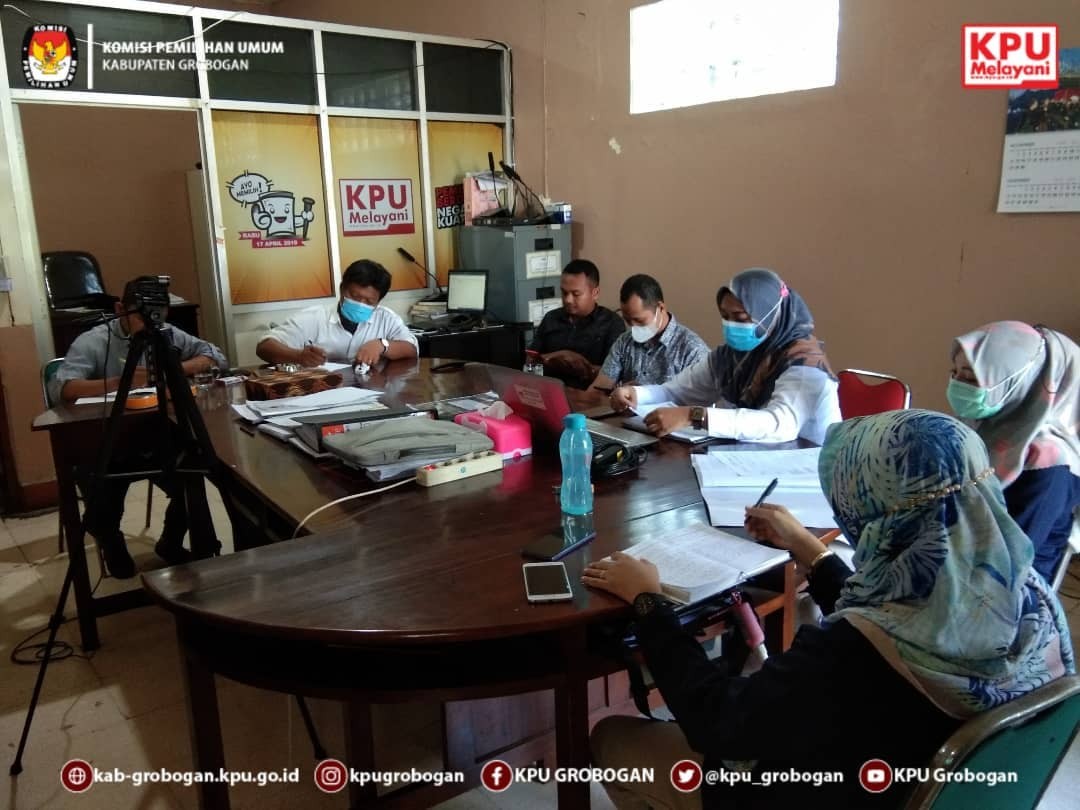 Hari ini, KPU Kabupaten Grobogan mengadakan rapat Koordinasi Pemutakhiran Data Pemilih Berkelanjutan Tahun 2021 Perode Bulan Desember Tahun 2021. Hadir sebagai tamu undangan kali ini adalah Polres Grobogan Kodim 0717 Purwodadi, Disdukcapil Kabupaten Grobogan, Dinas Kesbangpol Kabupaten Grobogan, Kantor Kemenag Kabupaten Grobogan Bawaslu, Dinas Pendidikan Provinsi Jawa Tengah Cabang IV, Kemenag Kabupaten GRobogan, Lapas IIB Purwodadi dan jajaran Partai Politik di Kabupaten Grobogan. Rakor Pemutakhiran Data Pemilih Berkelanjutan Perode Desember Tahun 2021 ini diawali dengan sambutan Ketua KPU Kabupaten Grobogan dilanjutkan dengan pemaparan materi PDPB oleh Bapak Muhammad machruz, ST dan diakhiri dengan sesi diskusi dan tanya jawab. Pada sambutannya, Agung Sutopo, S. Pi berterimakasih kepada tamu undangan yang hadir atas kehadirannnya dan juga atas bantuannya selama setahun terakhir ini dalam penyusunan Data Pemilih Berkelanjutan di tahun 2021 ini. Selanjutnya pada pemaparan materi, Bapak Muhammad Machruz, ST mengulas tuntas mengenai pemutakhiran data pemilih berkelanjutan ini sesuai dengan PKPU 6 Tahun 2021. Sedangkan pada sesi diskusi, beberapa pihak memberikan masukan kepada KPU Kabupaten Grobogan, antara lain dari Polres Grobogan, Dinas Pendidikan Provinsi Jawa tengah Cabang IV, Dinas Kependudukan dan Pencatatan Sipil Kabupaten Grobogan dan Bawaslu Grobogan. By : MM
