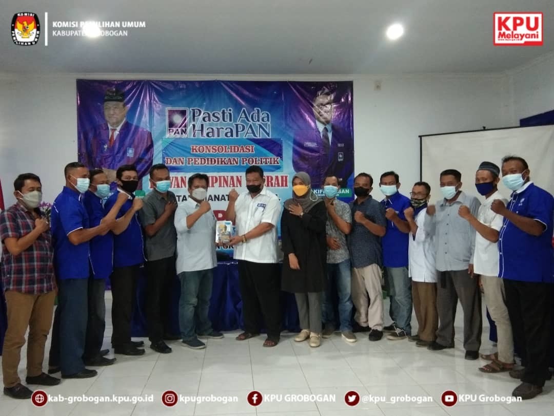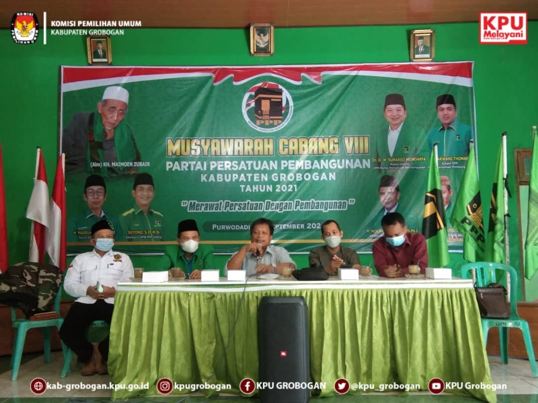Pagi ini, pukul 10.00 WIB KPU Kabupaten Grobogan berkesempatan untuk melaksanakan sosialisasi Sambang Sedulur Kamisan (SamSu Kamisan). Jadwal SamSu Kamisan hari ini adalah ke Partai Persatuan Pembangunan (PPP). Mengambil tempat adalah kantor DPC di Jalan Raya Purwodadi-Semarang acara Samsu Kamisan berjalan hangat, namun tetap menerapkan protokol kesehatan yang ketat. Berkenan hadir dari DPC PPP Grobogan adalah jajaran pengurus partai berlambang ka'bah itu. Sementara dari KPU Kab. Gorobogan hadir Agung, Machruz, dan Suwiknyo. SamSu Kamisan adalah salah satu agenda sosialisasi yang digagas KPU Kab. Grobogan dalam rangka menyampaikan informasi mengenai Pemilu dan Pemilihan Tahun 2024 kepada partai politik peserta pemilu. DPC PPP menyambut baik adanya kegiatan ini, karena merupakan bentuk menjalin komunikasi dan silaturahmi antara KPU dan partai politik. Sementara Agung Sutopo berharap kegiatan SamSu Kamisan dapat berjalan terus, agar informasi mengenai Pemilu dan Pemilihan dapat tersampaikan ke partai politik. Di akhir acara KPU Kab. grobogan menyerahkan beberapa buku seperti "Mencermati Transparansi Sistem Dana Kampanye Pilbup grobogan 2020" dan "Dinamika Pemutakhiran Data Pemilih Pilbup Grobogan 2020". By : MM
