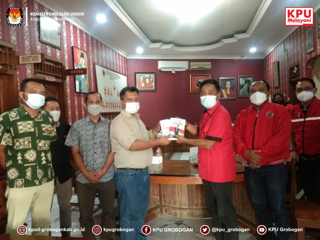 Siang ini, KPU Kabupaten Grobogan berkesempatan untuk melaksanakan sosialisasi Sambang Sedulur Kamisan (SamSu Kamisan). Jadwal SamSu Kamisan hari ini adalah ke Partai Demokrasi Indonesia Perjuangan (PDIP). Mengambil tempat di kantor DPC di Jalan Ahmad Yani Purwodadi acara Samsu Kamisan berjalan hangat, namun tetap menerapkan protokol kesehatan. Berkenan hadir dari DPC PDIP Grobogan adalah Agus Siswanto, Sos bersama jajaran pengurus partai berlambang banteng itu. Sementara dari KPU Kab. Gorobogan hadir Agung, Machruz, Ngatiman dan Suwiknyo. SamSu Kamisan adalah salah satu agenda sosialisasi yang digagas KPU Kab. Grobogan dalam rangka menyampaikan informasi mengenai Pemilu dan Pemilihan Tahun 2024 kepada partai politik peserta pemilu. Agus Siswanto menyambut baik adanya kegiatan ini, karena merupakan bentuk menjalin komunikasi dan silaturahmi antara KPU dan partai politik. Sementara Agung Sutopo berharap kegiatan SamSu Kamisan dapat berjalan terus, agar informasi mengenai Pemilu dan Pemilihan dapat tersampaikan ke partai politik. Di akhir acara KPU Kab. grobogan menyerahkan beberapa buku seperti "Mencermati Transparansi Sistem Dana Kampanye Pilbup grobogan 2020" dan "Dinamika Pemutakhiran Data Pemilih Pilbup Grobogan 2020". By : MM