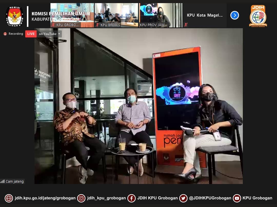 Seperti Rabu sebelumnya. KPU Kabupaten Grobogan mengikuti program “Rabu Ingin Tahu” yang diselenggarakan oleh KPU Provinsi Jawa Tengah. Setiap minggunya acara “Rabu Ingin Tahu” ini mengangkat topik yang berbeda. KPU Provinsi Jawa Tengah mengangkat tema yang berbeda tiap minggunya agar para pecinta “Rabu Ingin Tahu” tidak bosan dan selalu mendapatkan informasi yang baru di setiap minggunya. KPU Kabupaten Grobogan selalu antusias manakala “Rabu Ingin Tahu” digelar. Tentunya karena topik atau tema yang dibahas selalu fresh dan dikeas dengan santai, namun tidak mengurangi esensi dari acara tersebut. Seperti hari ini, “Rabu Ingin tahu ” mengambil tema Antisipasi Benturan Kepentingan Penyelenggara Pemilu. Tema ini diangkat karena posisi penyelenggara Pemilu terus menjadi sorotan. Menjadi penyelenggara Pemilu memiliki tanggungjawab yang besar, yang tidak hanya dipertanggungjawabkan pada masyarakat, tetapi kepada Tuhan. Muslim Aisha menghimbau bahwa sebaga penyelenggara Pemilu di tingkatan manapun, haruslah menjaga netralitas, kredibilitas dan selalu meningkatkan kemampuan serta kinerja. Agung Sutopo yang juga mengikuti acara ini juga berharap bahwa jajaran KPU Kabupaten Grobogan dapat selalu melakukan tugas dan kewajibannya sesuai dengan aturan yang telah ditetapkan oleh KPU. Agar segala kegiatan dan tahapan yang berjalan selalu on the track.