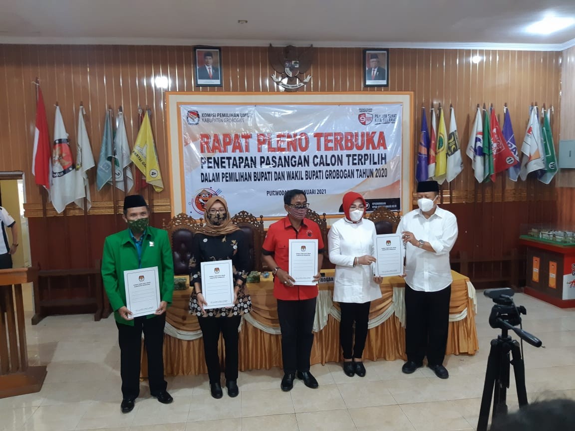 “Kami KPU Grobogan mengucapkan terima kasih atas sumbangan pikiran, tenaga, dan juga pemerintah kabupaten Grobogan, dan semua yang terlibat dalam Pemilukada 2020 yang sudah membantu kelancaran pesta demokrasi. Apapun semua tahapan, kita lakukan sesuai PKPU 6, kami sediakan semuanya untuk sarana dan prasarana protokol kesehatan, teman-teman di lapangan bisa melaksanakan dengan baik. Harapan kami, baik penyelenggara, peserta dan masyarakat pemilih tetap sehat,” pungkasnya.