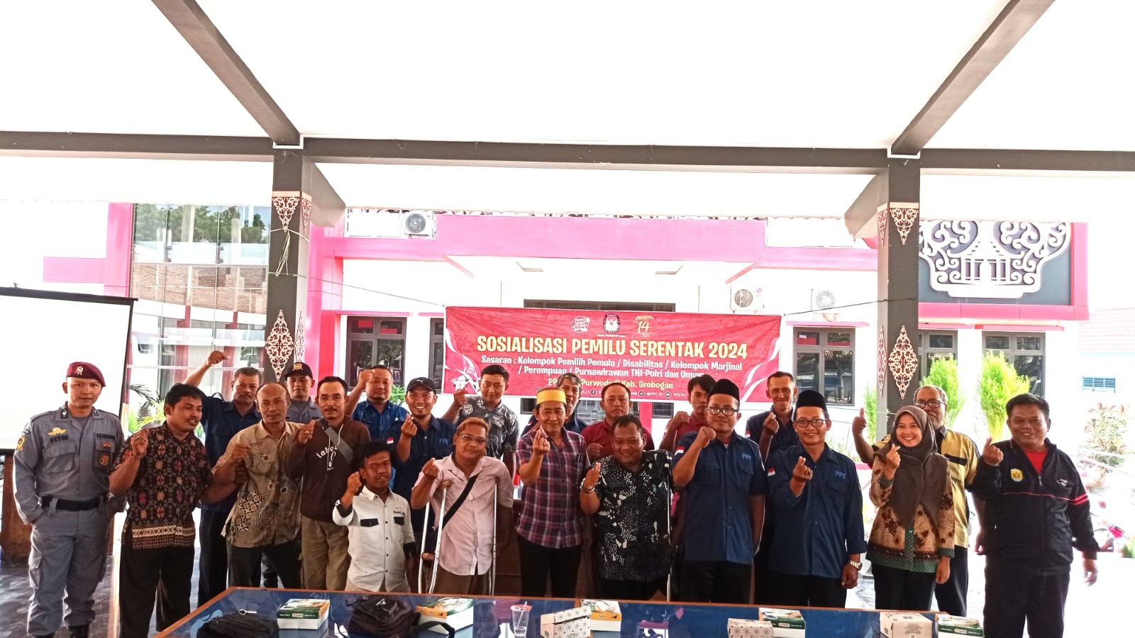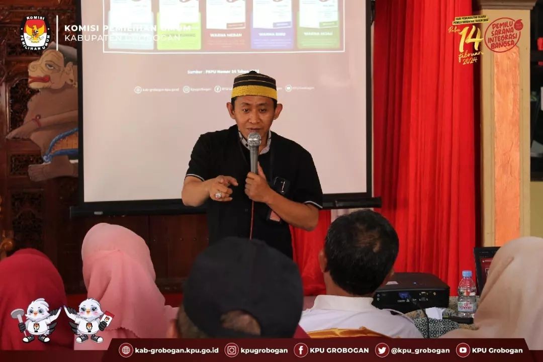 Di Pasar Induk Purwodadi, kegiatan awal yang dilakukan yaitu memberikan sosialisasi kepada para pedagang. Adapun materi sosialisasi yang disampaikan yaitu mengajak seluruh pedagang Pasar Induk Purwodadi sebanyak ± 1.000 pedagang untuk memberikan suaranya pada Hari Rabu, tanggal 14 Februari 2024 serta memberikan informasi mengenai 5 (lima) surat suara yang akan diterima oleh masing-masing pedagang yang telah mempunyai hak pilih, meliputi : surat suara Presiden dan Wakil Presiden, surat suara DPR RI, surat suara DPD RI, surat suara DPRD Provinsi, dan surat suara DPRD Kabupaten/Kota disamping juga pemberian leaflet berisikan informasi mengenai hari dan tanggal pemungutan suara serta cek DPT online.
