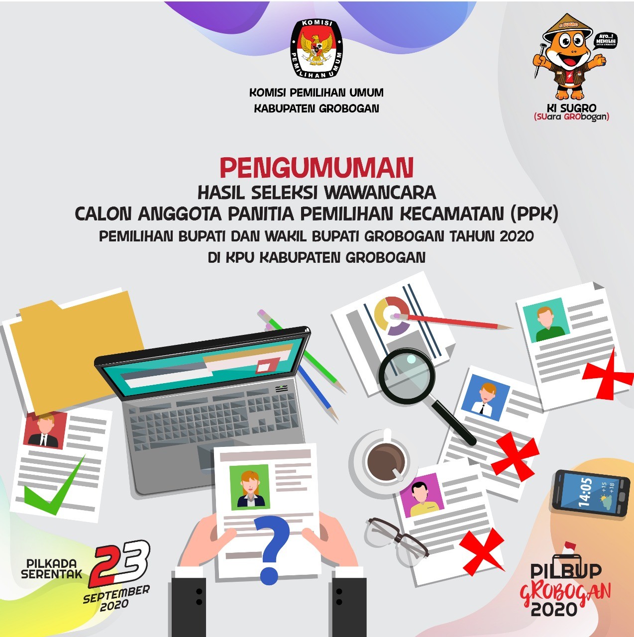 Dan segera bergabung bersama KPU Kab. Grobogan menyukseskan Pemilihan Bupati Dan Wakil Bupati Grobogan Tahun 2020…