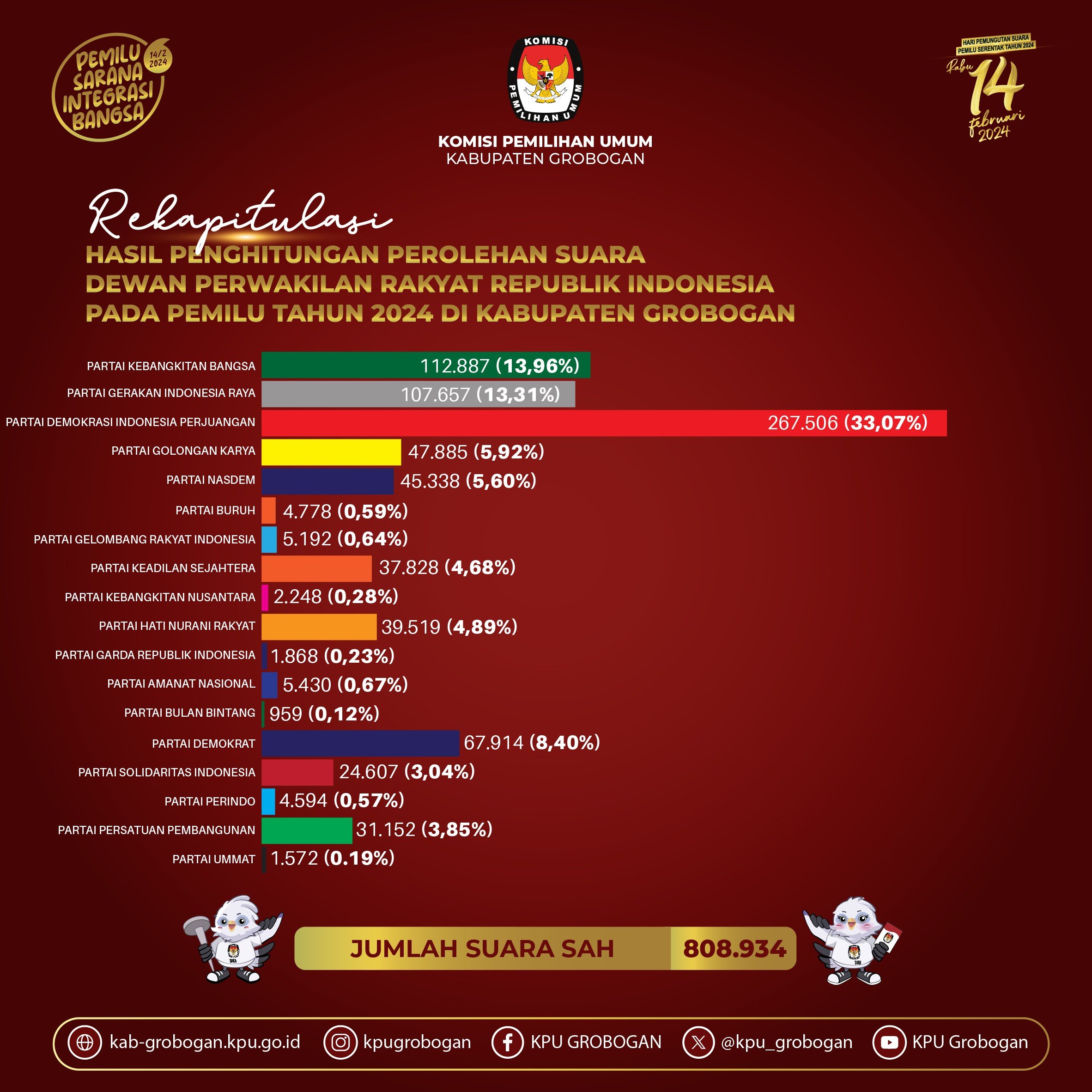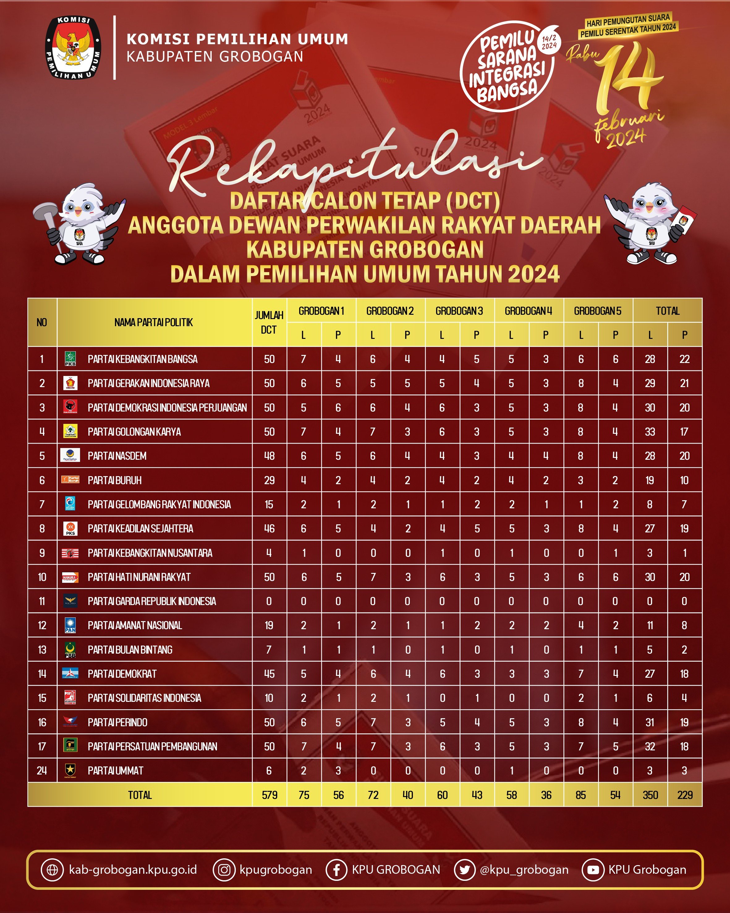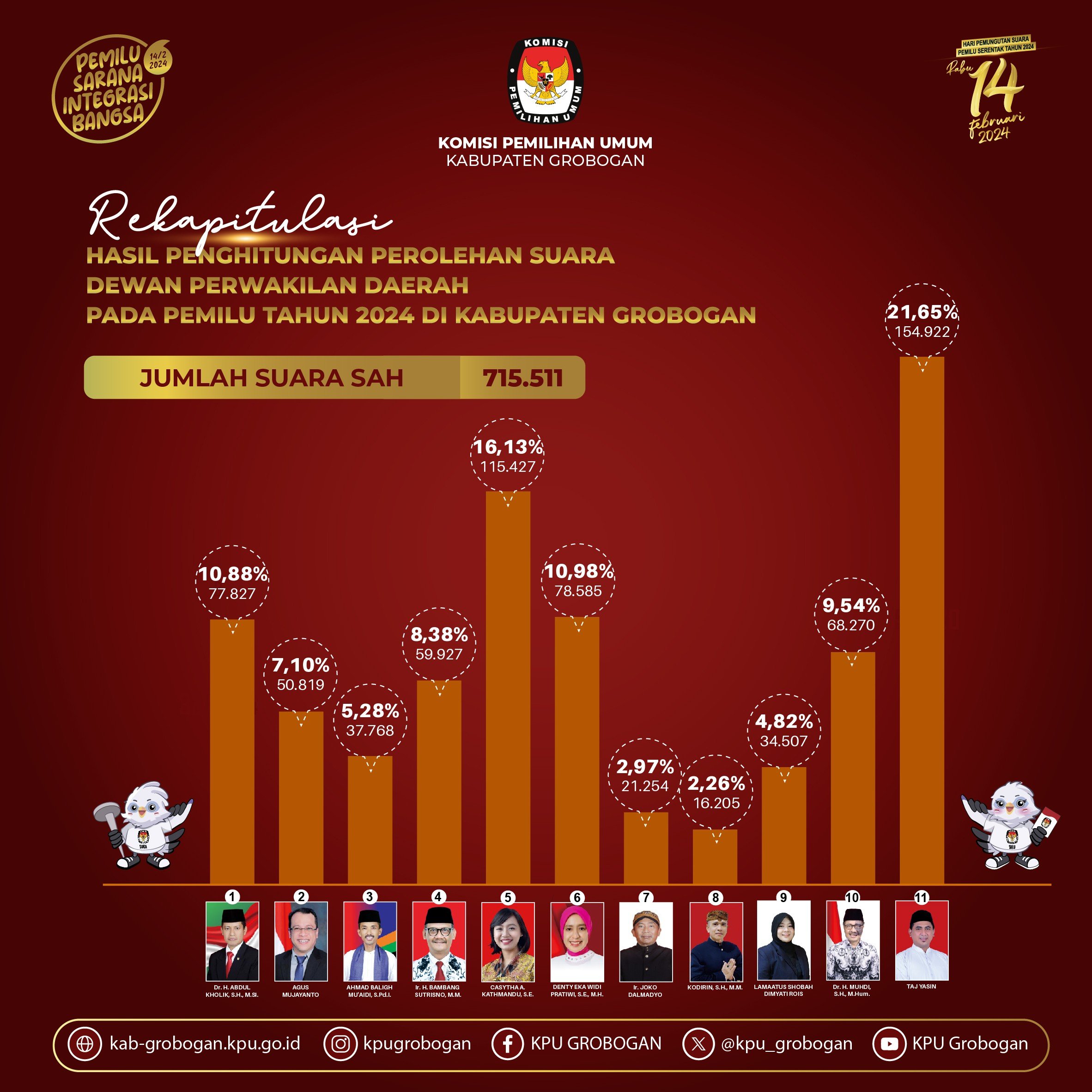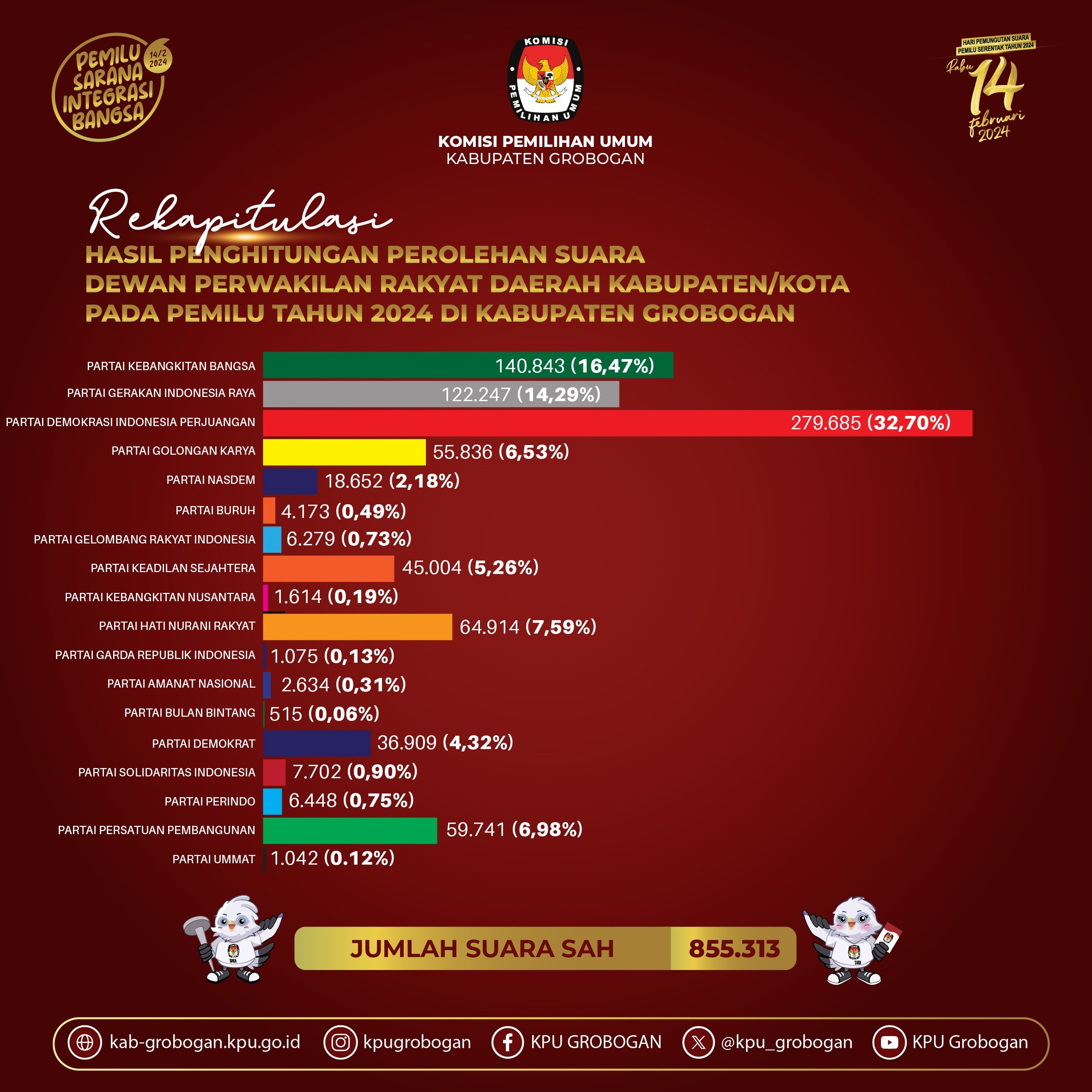 Perolehan Kursi Partai Politik dan Calon Terpilih DPRD Kab Grobogan
