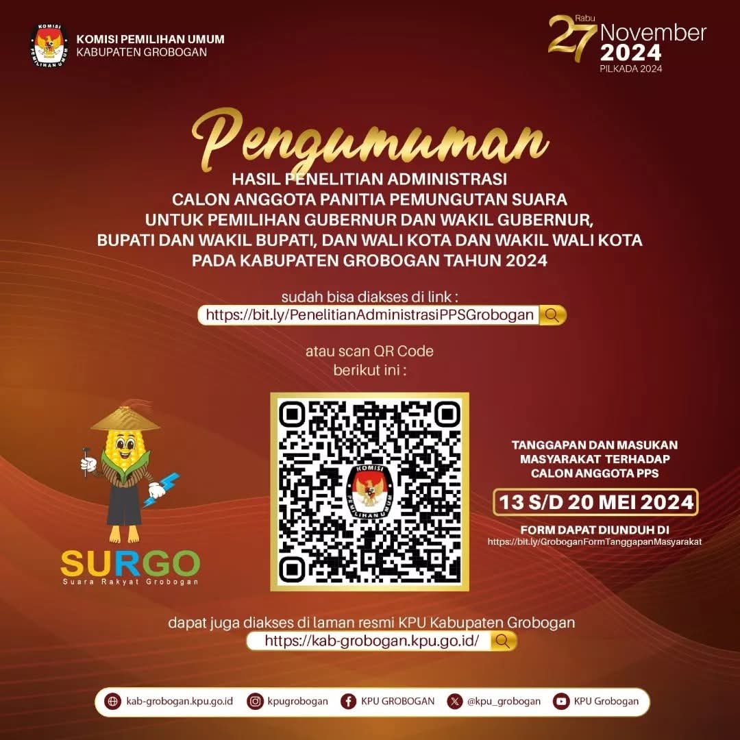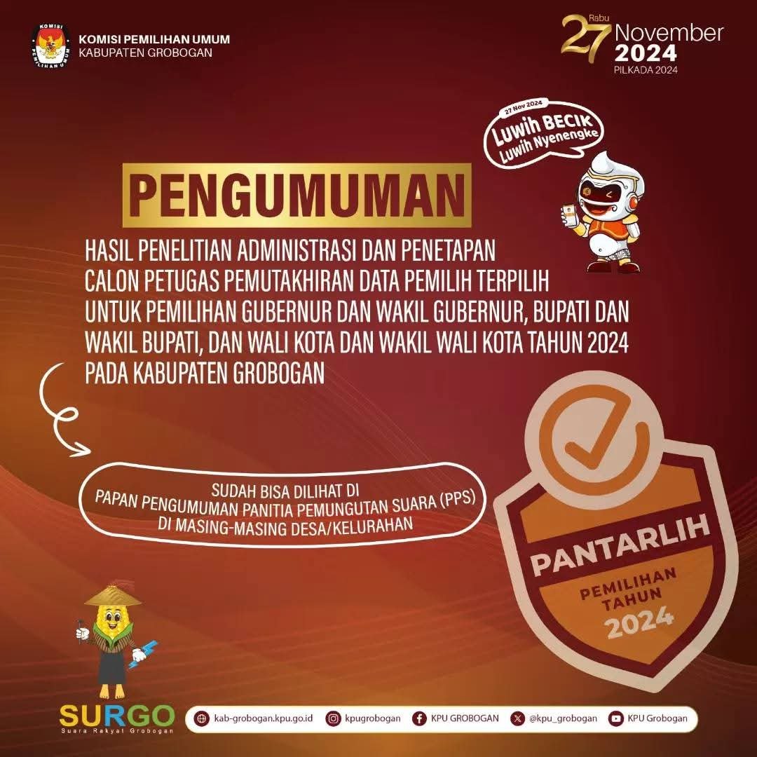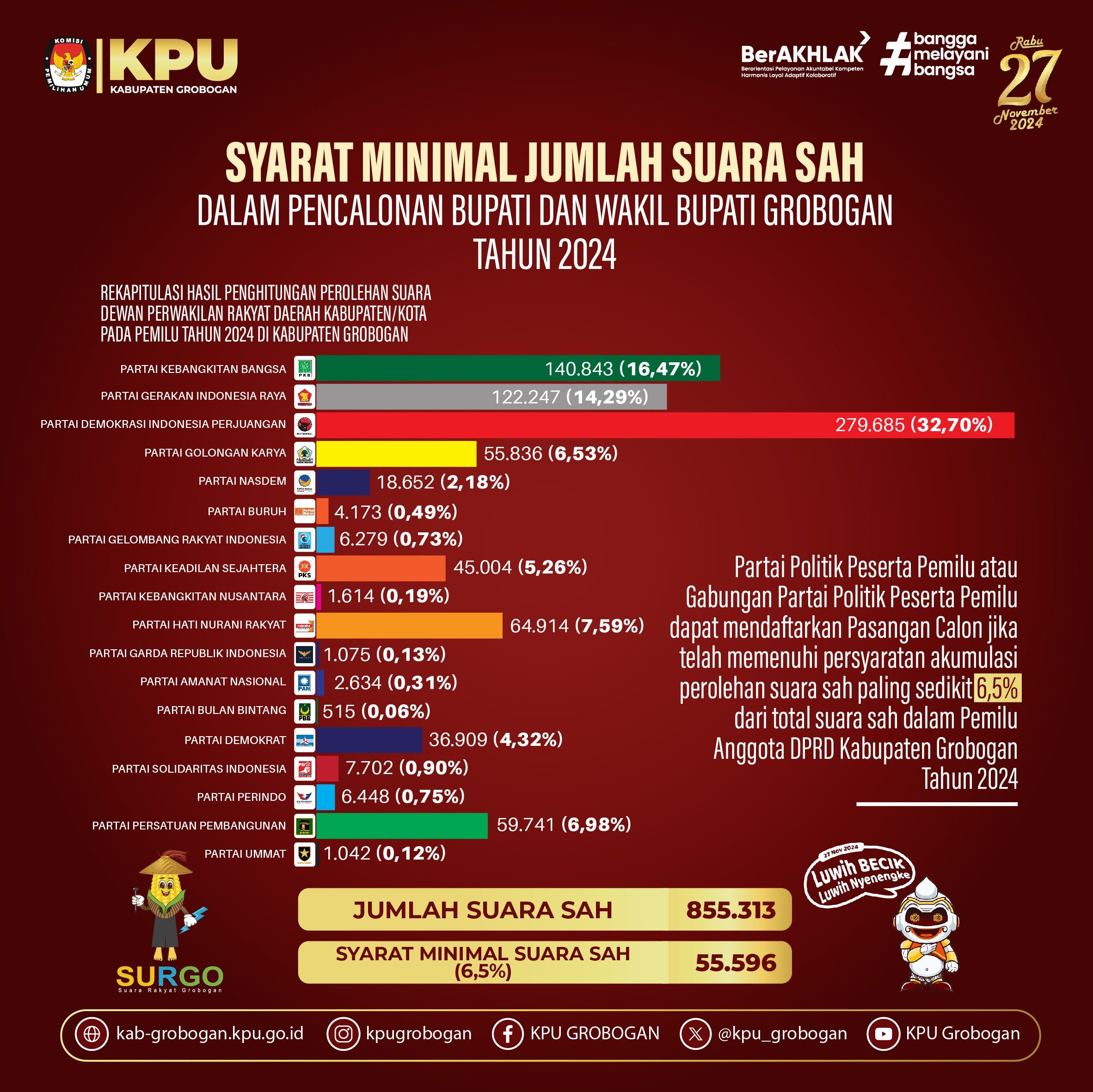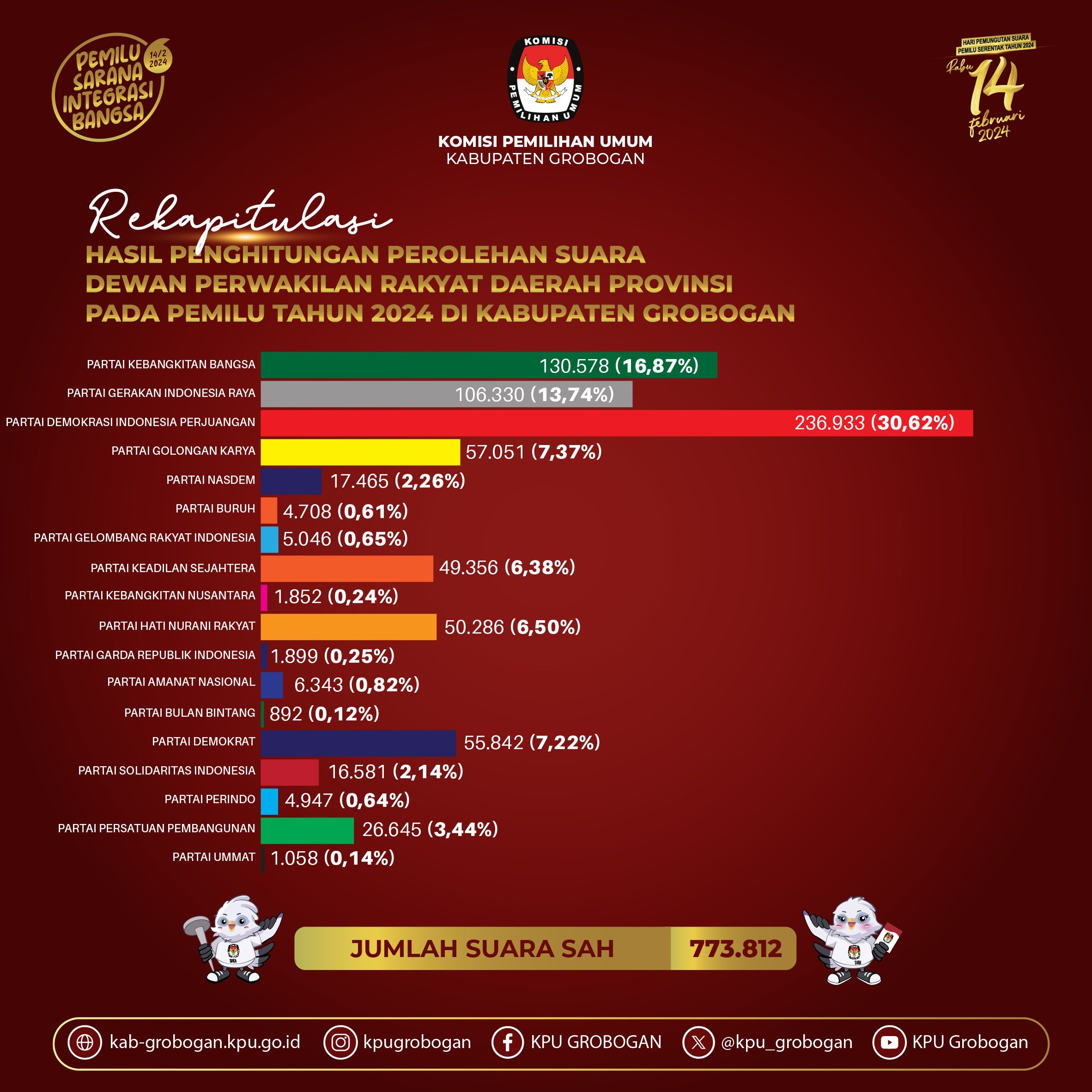 Perolehan Kursi Partai Politik dan Calon Terpilih DPRD Kab Grobogan