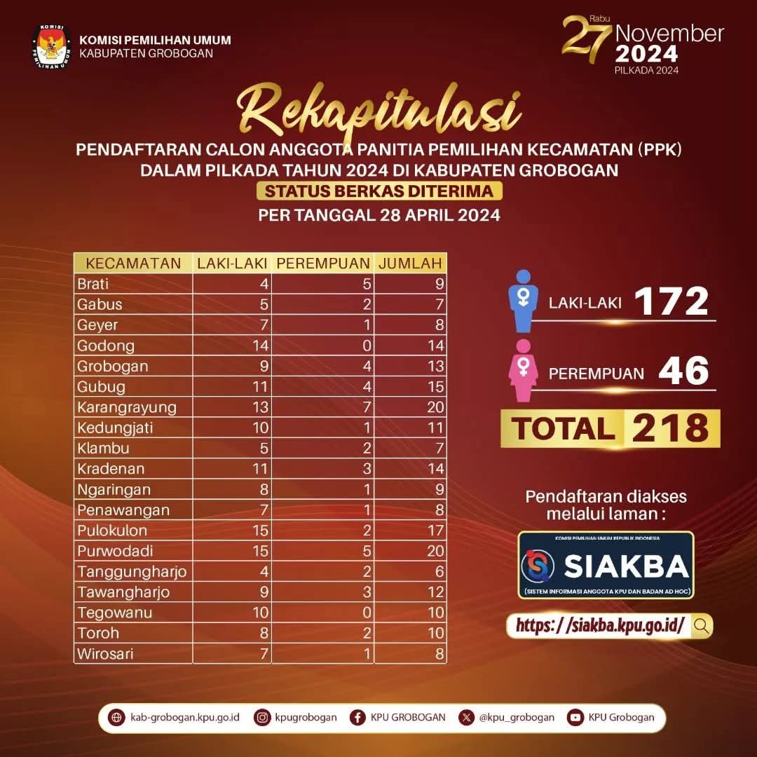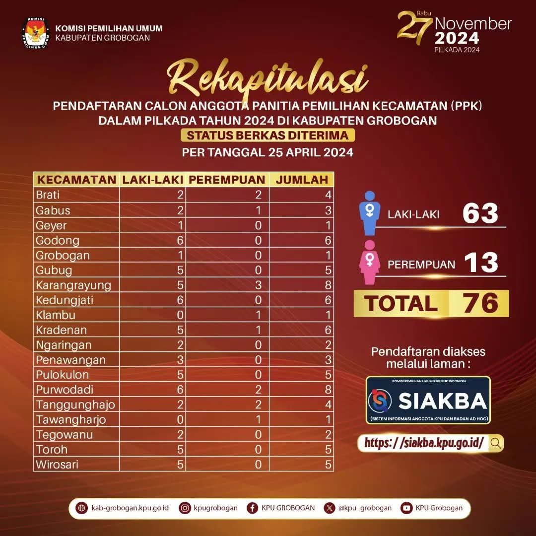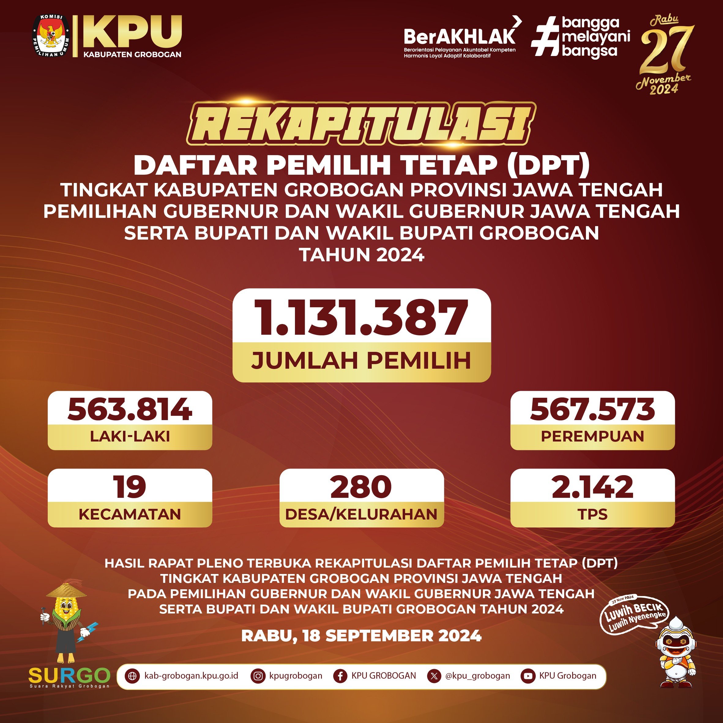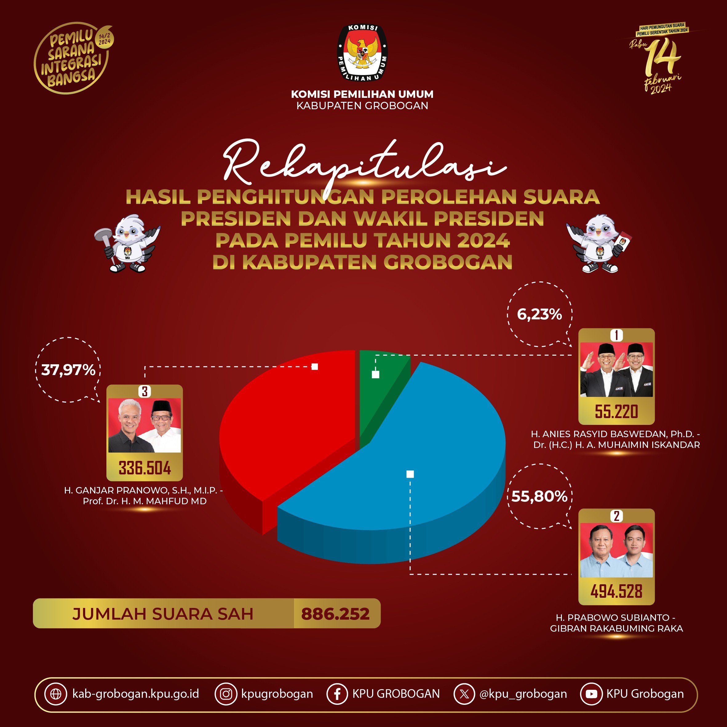 Rekapitulasi Hasil Penghitungan Perolehan Suara Pemilihan Bupati dan Wakil Bupati Grobogan Tahun 202