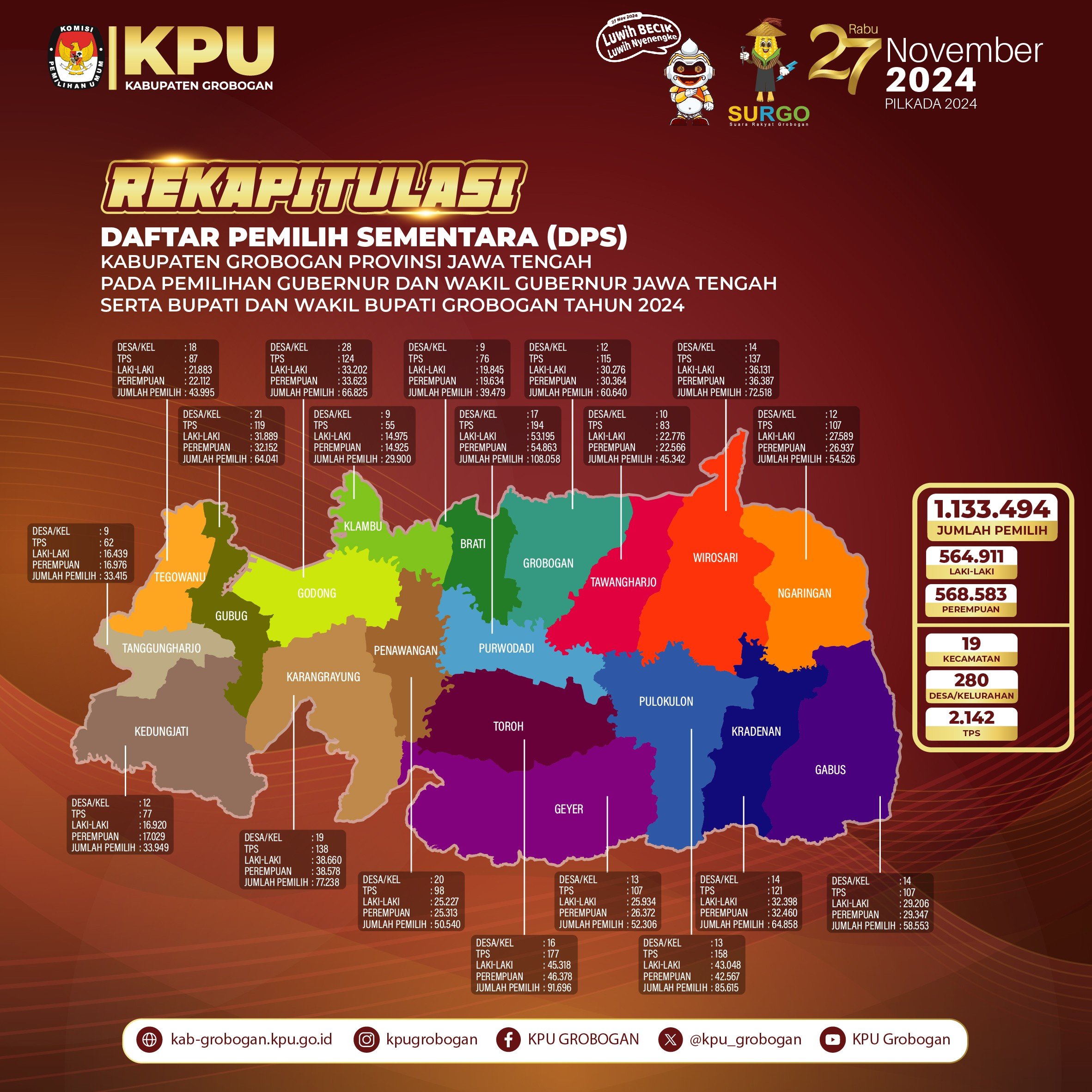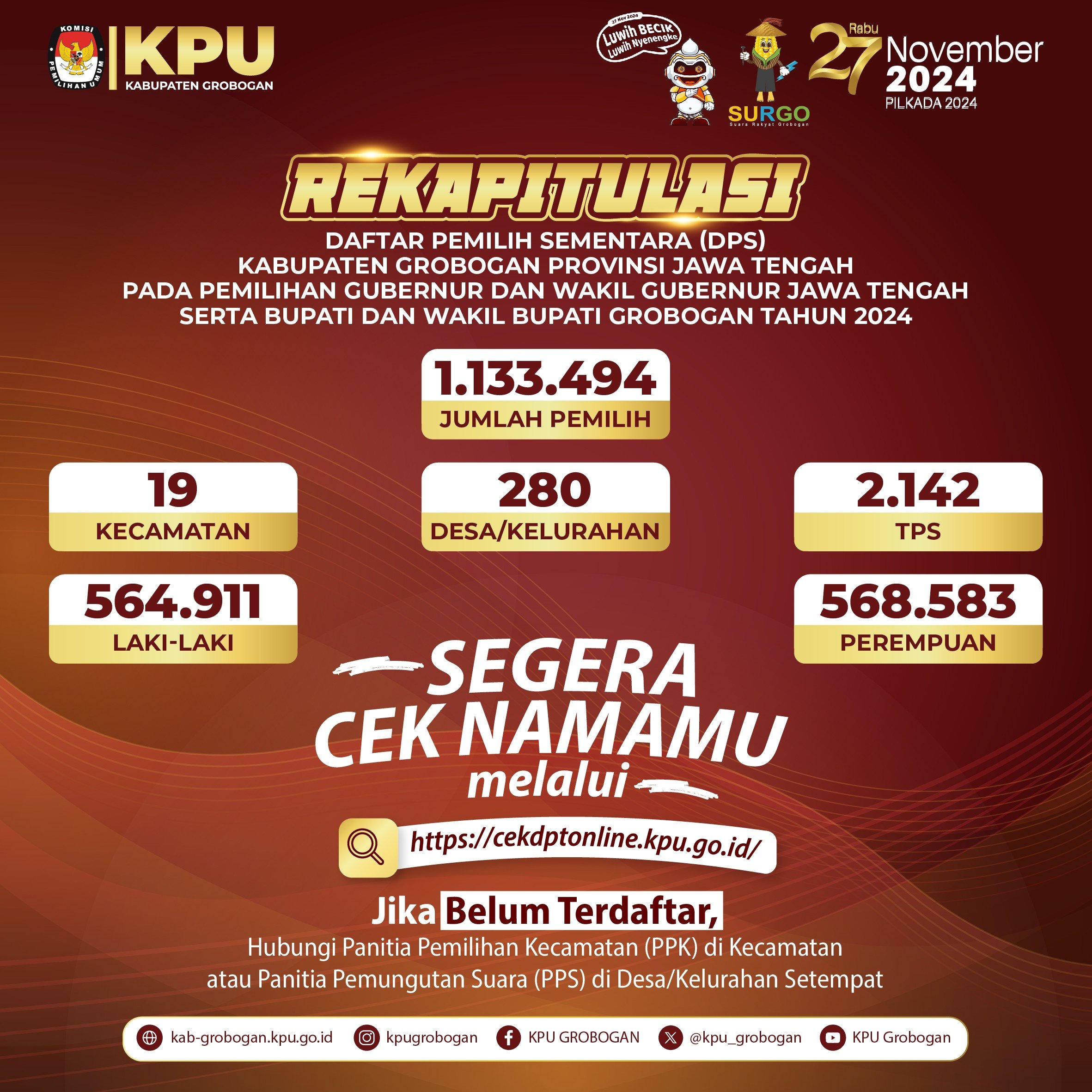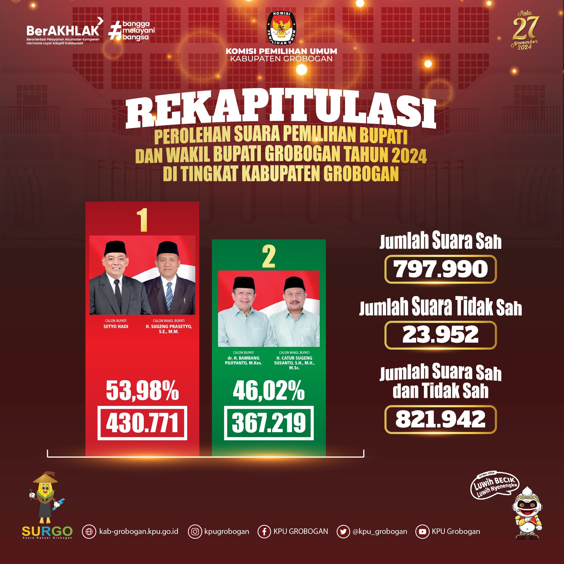Hasil Rekapitulasi Pemilihan Bupati dan Wakil Bupati Kabupaten Grobogan 2020