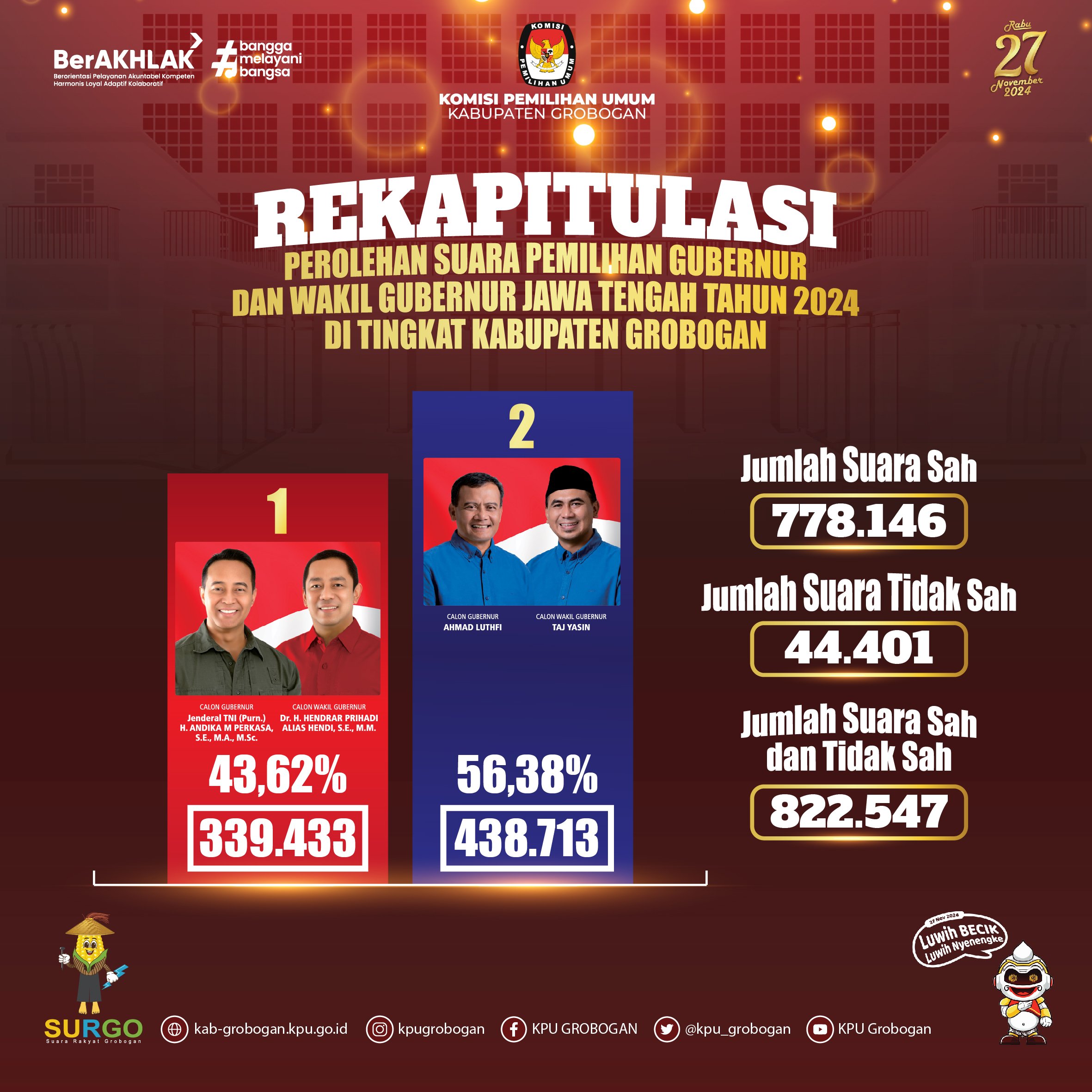 Hasil Rekapitulasi Pemilihan Gubernur dan Wakil Gubernur Jawa Tengah 2018 tingkat Kabupaten Grobogan